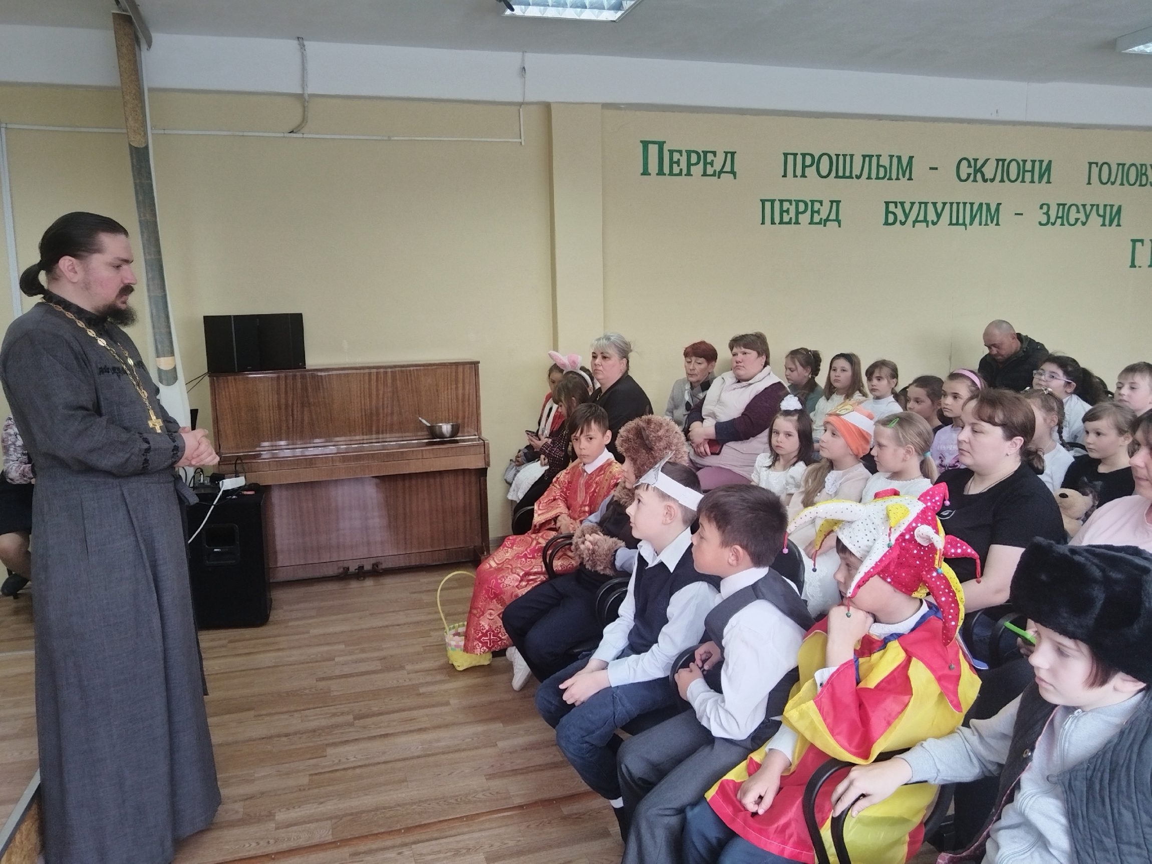 Началось мероприятие с поздравительных слов иерея Алексия Дудина: «Христос Воскресе! Дорогие ребята, учителя, родители, поздравляю вас со Светлым праздником Пасхи Христовой. Иисус Воскрес, чтобы светом Своего Воскресения озарить мир божественной любовью. Полюбим и мы Христа, и будем вместе радоваться с другими и за других. Еще раз всех поздравляю с великом праздником».