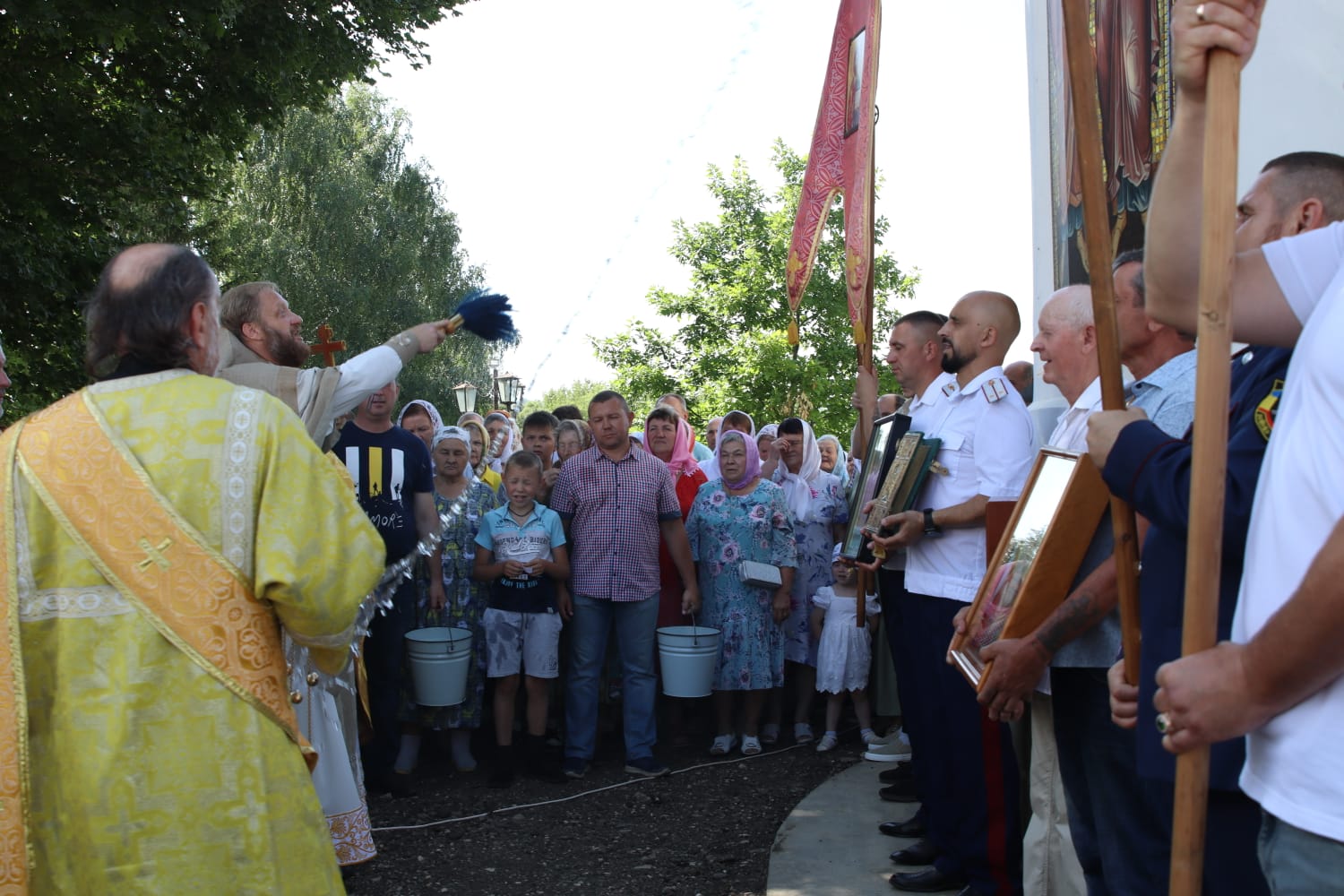 Дорогие мои, от всей души благодарю вас! Прежде всего, вас, отец Вячеслав, за мудрое духовное руководство. Вас, мои дорогие и любимые прихожане, наши неутомимые пчёлки-кормилицы, которые под палящим солнцем щедро накормили всех нас. Но не забудем и о труженицах невидимого фронта, тех, кто убирал храм, готовил территорию, заботился о духовенстве и вложил всю душу в устроение этого праздника. Завершить хочется прекрасными словами песни: «Чтобы мы жили, не тужили, по совести жили». Радости всем нам о Духе Святом! С праздником святых апостолов Петра и Павла!»