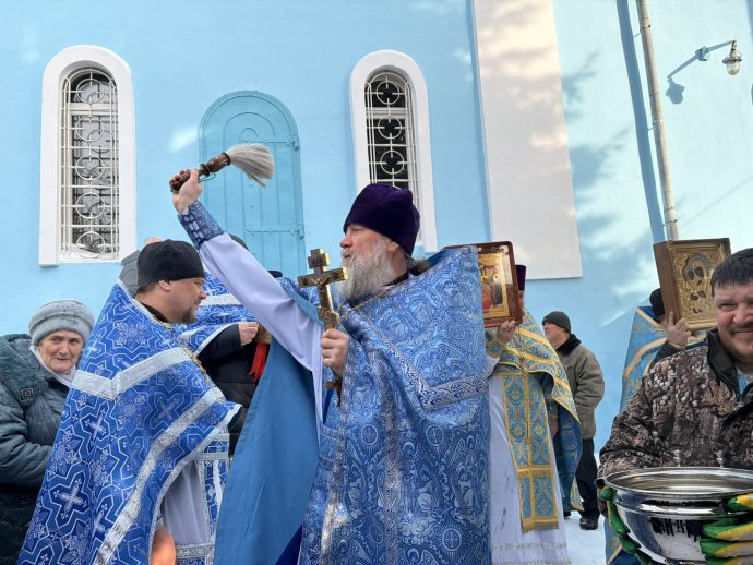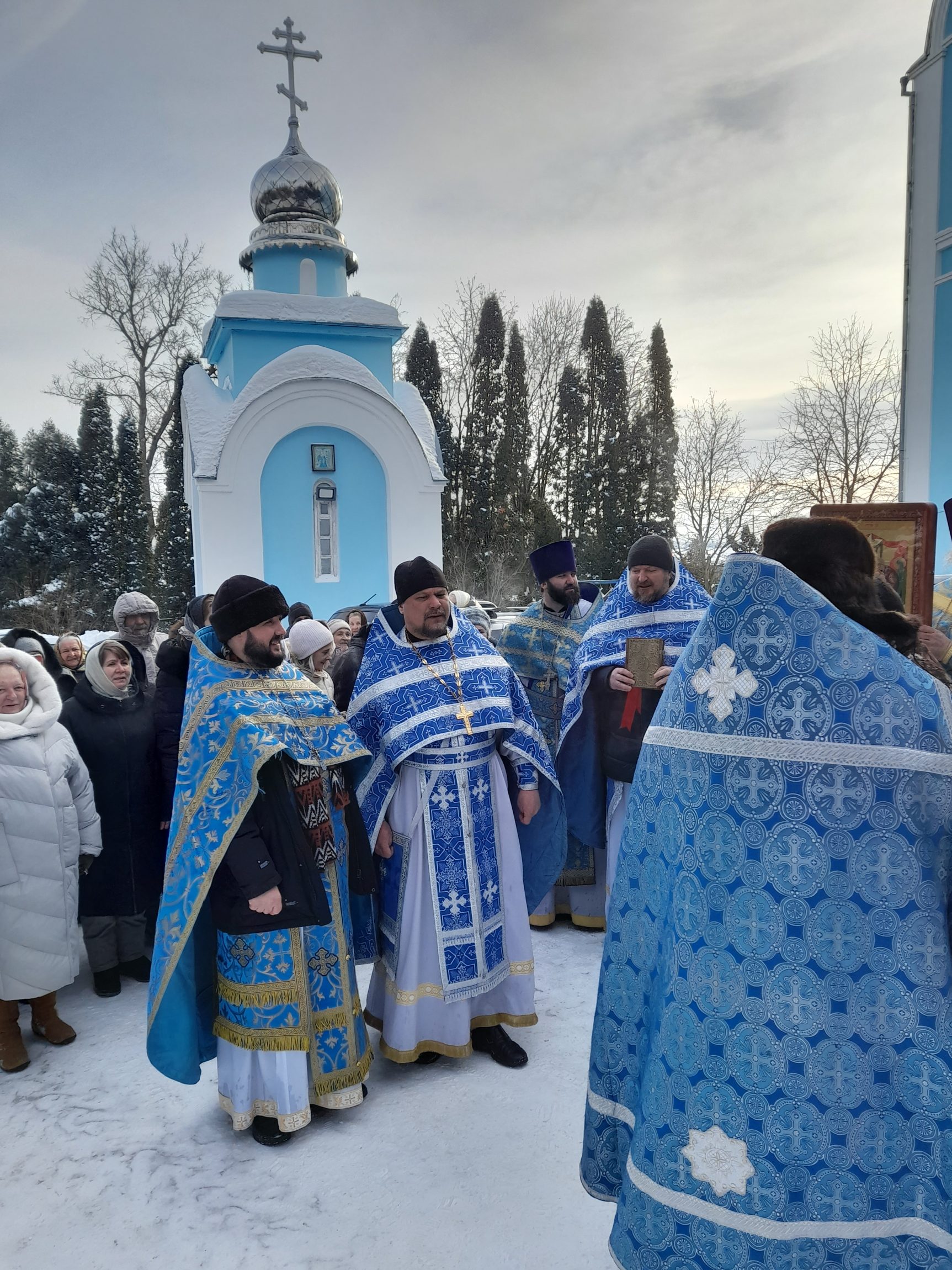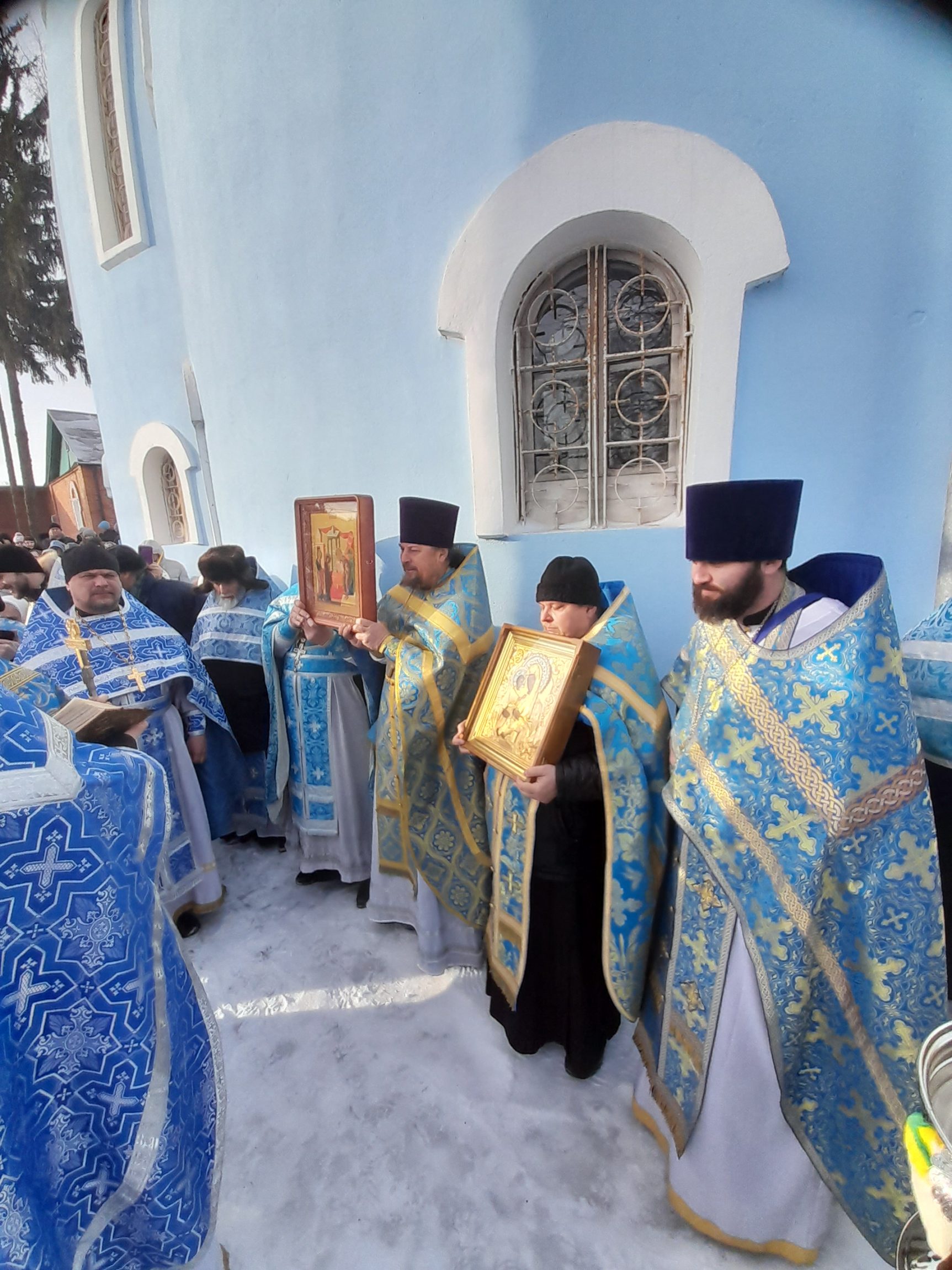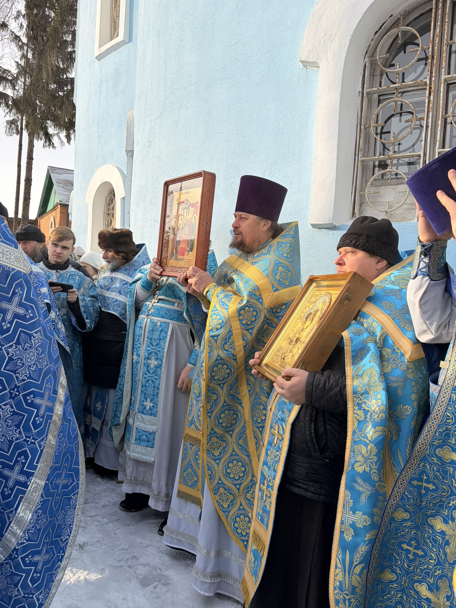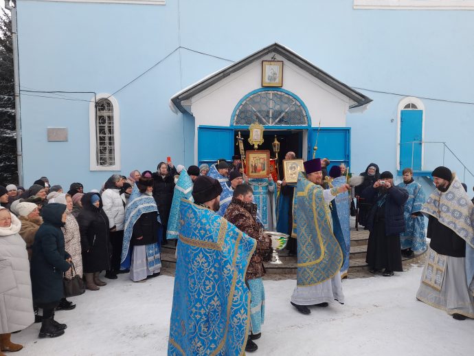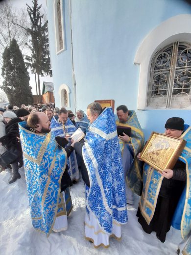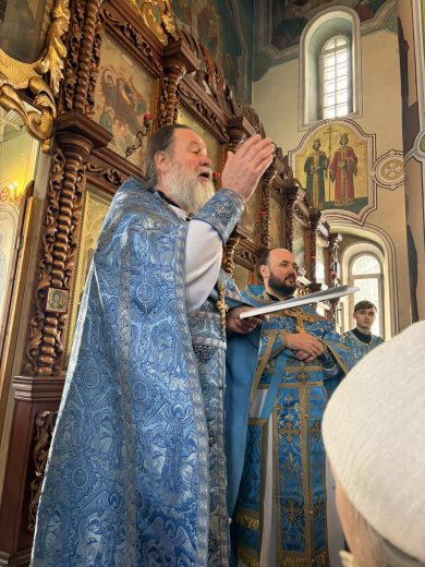 По окончании Литургии духовенство и прихожане крестным ходом обошли вокруг собора с пением величания Божией Матери и молитвы «Царице моя Преблагая».