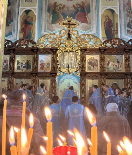 Богослужение отличалось особой торжественностью. Праздничные песнопения исполнили два хора.