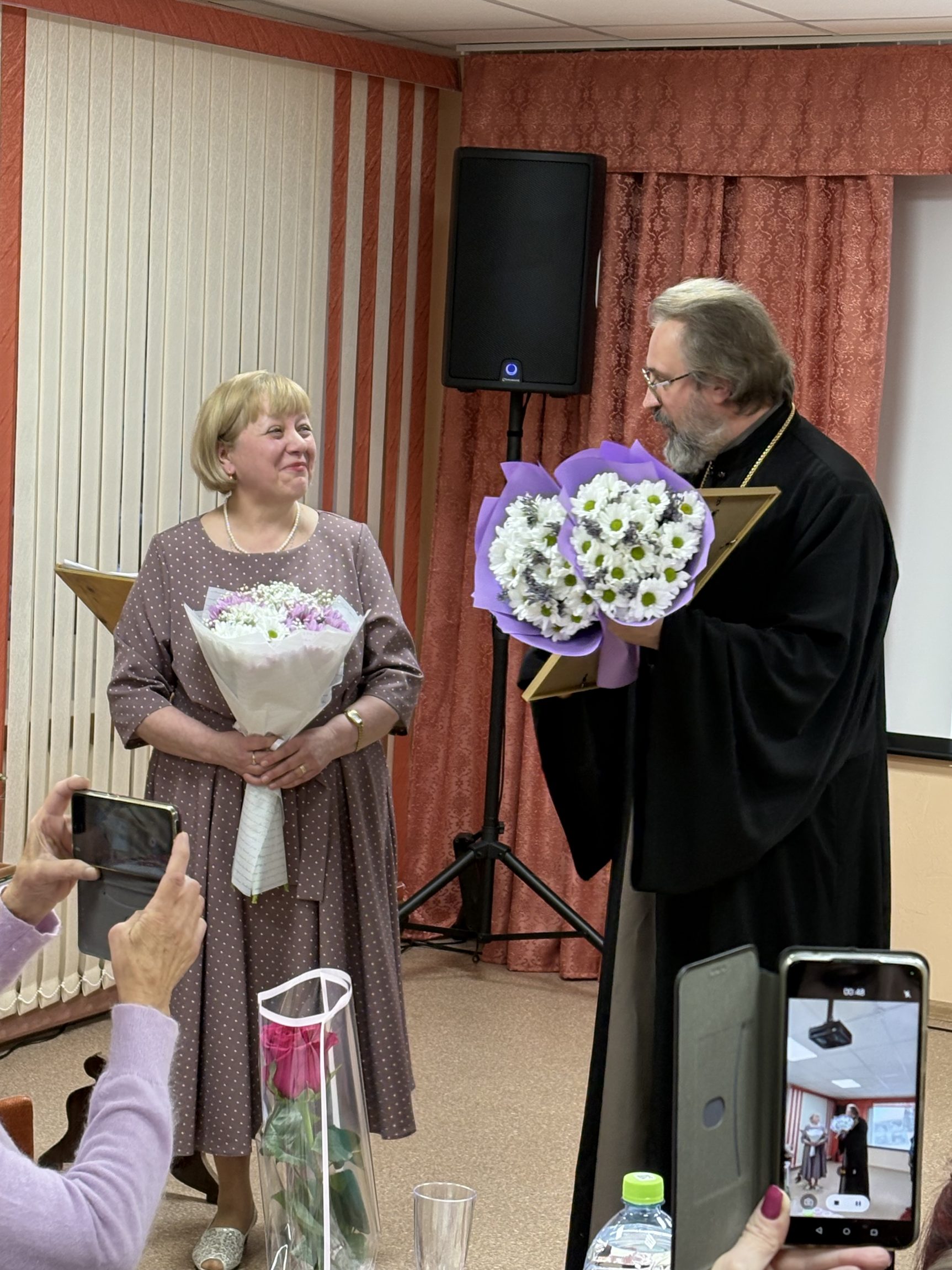 В поздравительном слове настоятель храма Всех Святых, в земле Русской просиявших, протоиерей Андрей Жеребцов поблагодарил коллектив и выразил пожелание на дальнейшее плодотворное сотрудничество.