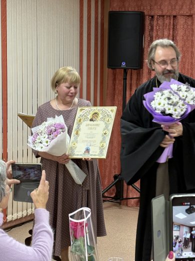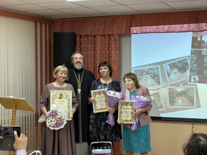В связи с юбилеем и в знак высокого признания за многолетние труды и значительный вклад в духовно-нравственное просвещение населения Тульская митрополия удостоила сотрудников филиала церковных наград: заведующую филиалом Галину Кудряшову наградили Архиерейской грамотой. Сотрудников – Елену Загрядскую и Татьяну Рыжову – поощрили Архиерейской благодарностью.