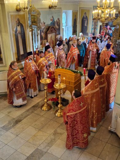 7 мая Божественную литургию возглавил настоятель Успенского и Всехсвятского кафедральных соборов города Тулы протоиерей Сергий Резухин в сослужении игумена Герасима (Дьячкова), заместителя ректора Московской духовной академии по административно-хозяйственной работе, уроженца Тульской области, благочинного Богородицкого округа протоиерея Стефана Гриваса, настоятеля храма протоиерея Алексия Резухина, а также духовенства города Тулы, Богородицкого, Воловского и Новомосковского благочиний.