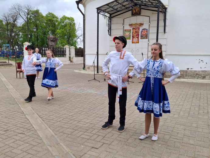 После Божественной литургии на Георгиевской площади храма силами воскресной школы и певчих правого клироса состоялся концерт, посвященный 80-летию повторного открытия храма и наступающему празднованию Дня Победы. Почетными участниками мероприятия стали воскресная школа Знаменского храма поселка Волово, а также ансамбль «Ломовские посиделки» под руководством Николая Корякина.