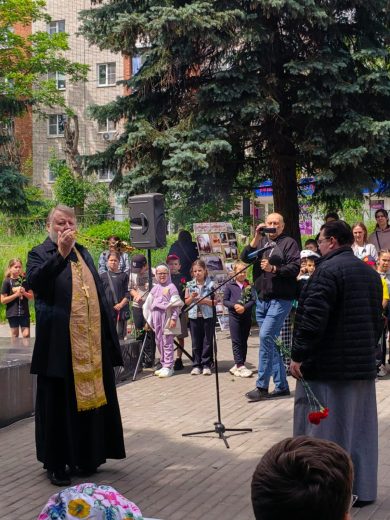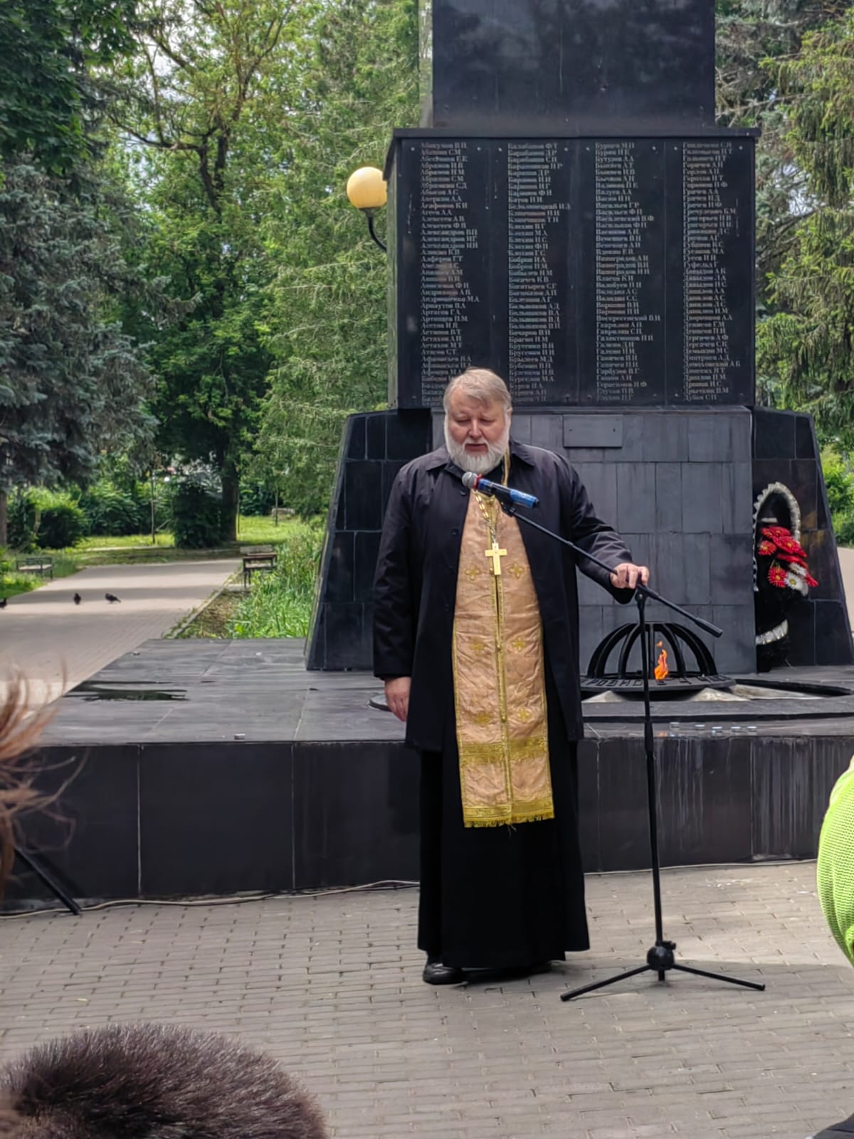 Настоятель храма Державной иконы Божией Матери протоиерей Ярослав Кривич в сослужении алтарника Павла Васильева отслужил панихиду по всем воинам, погибшим в Великой Отечественной войне. Отец Ярослав обратился к собравшимся: «Царствие небесное и вечный покой всем усопшим нашим воинам, победы ради потрудившимся. Нам нужно не забывать и ценить то, что Господь дал нам – нашу землю, наше Отечество. Нужно его любить, сохранять и развивать. И дай Бог, чтобы мы с вами хранили и помнили историю нашего народа и продолжали ее писать, будучи достойными памяти наших предков и их подвигов!»
