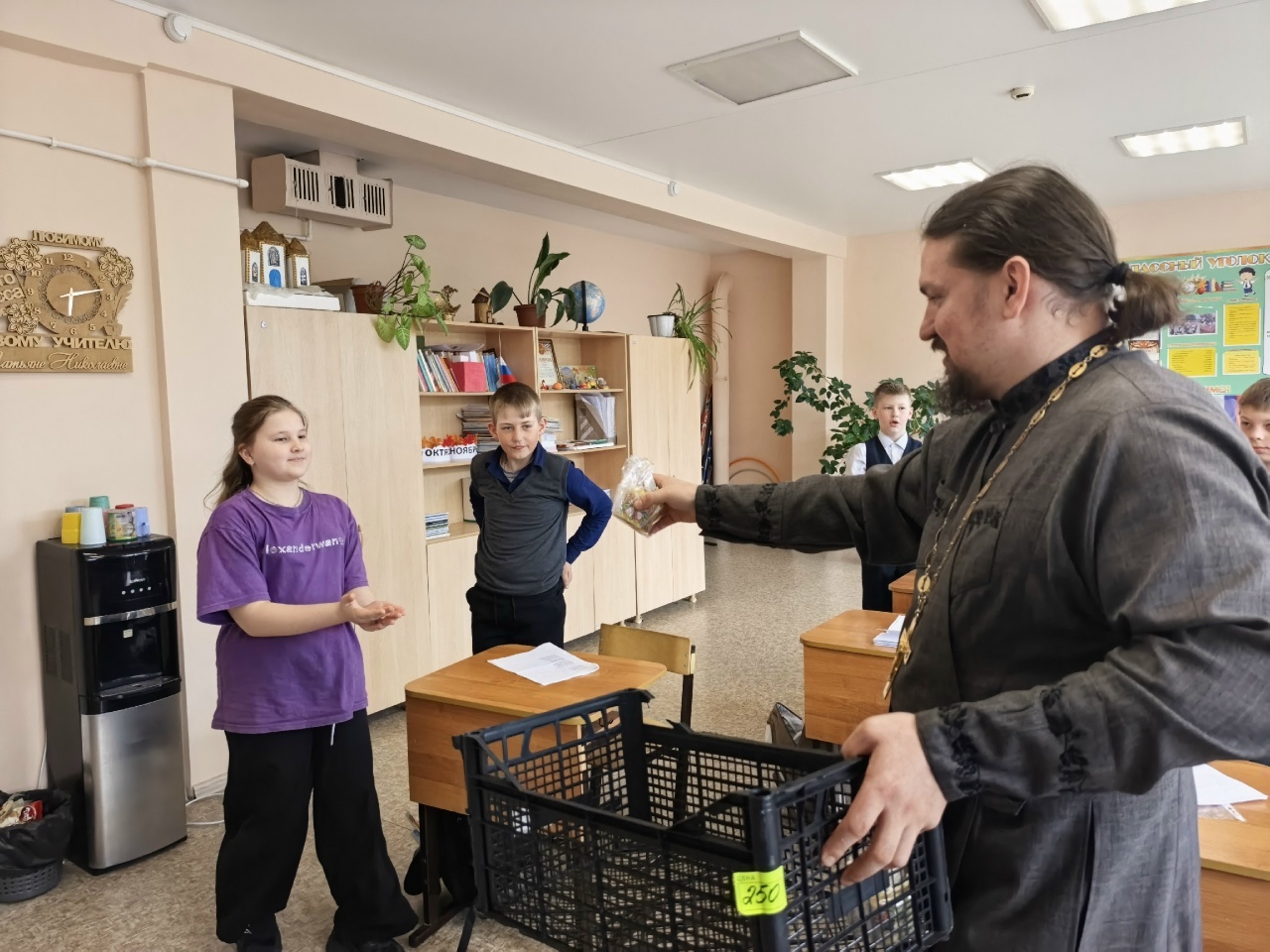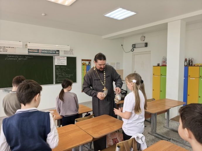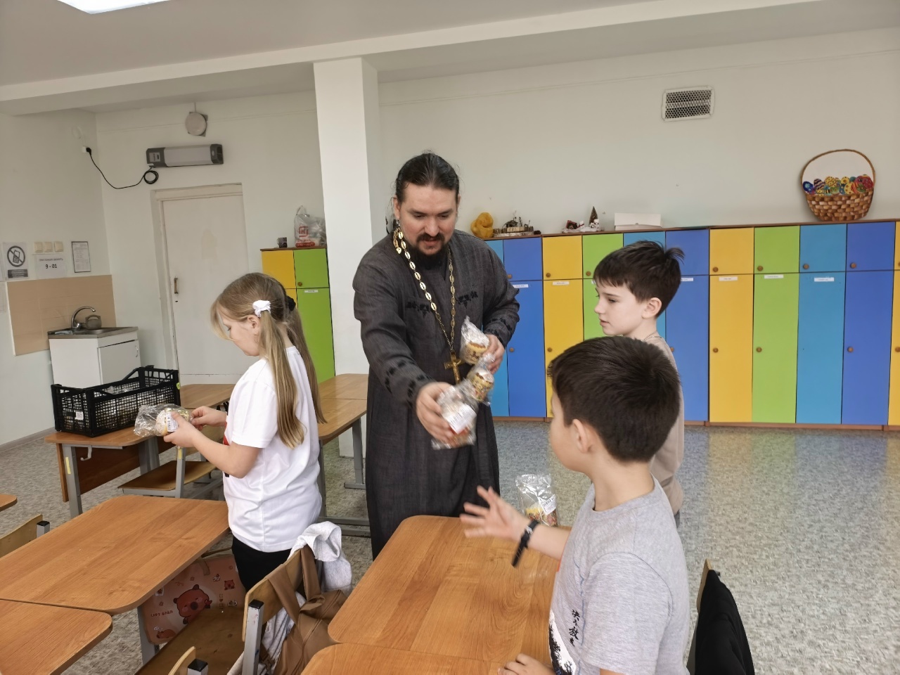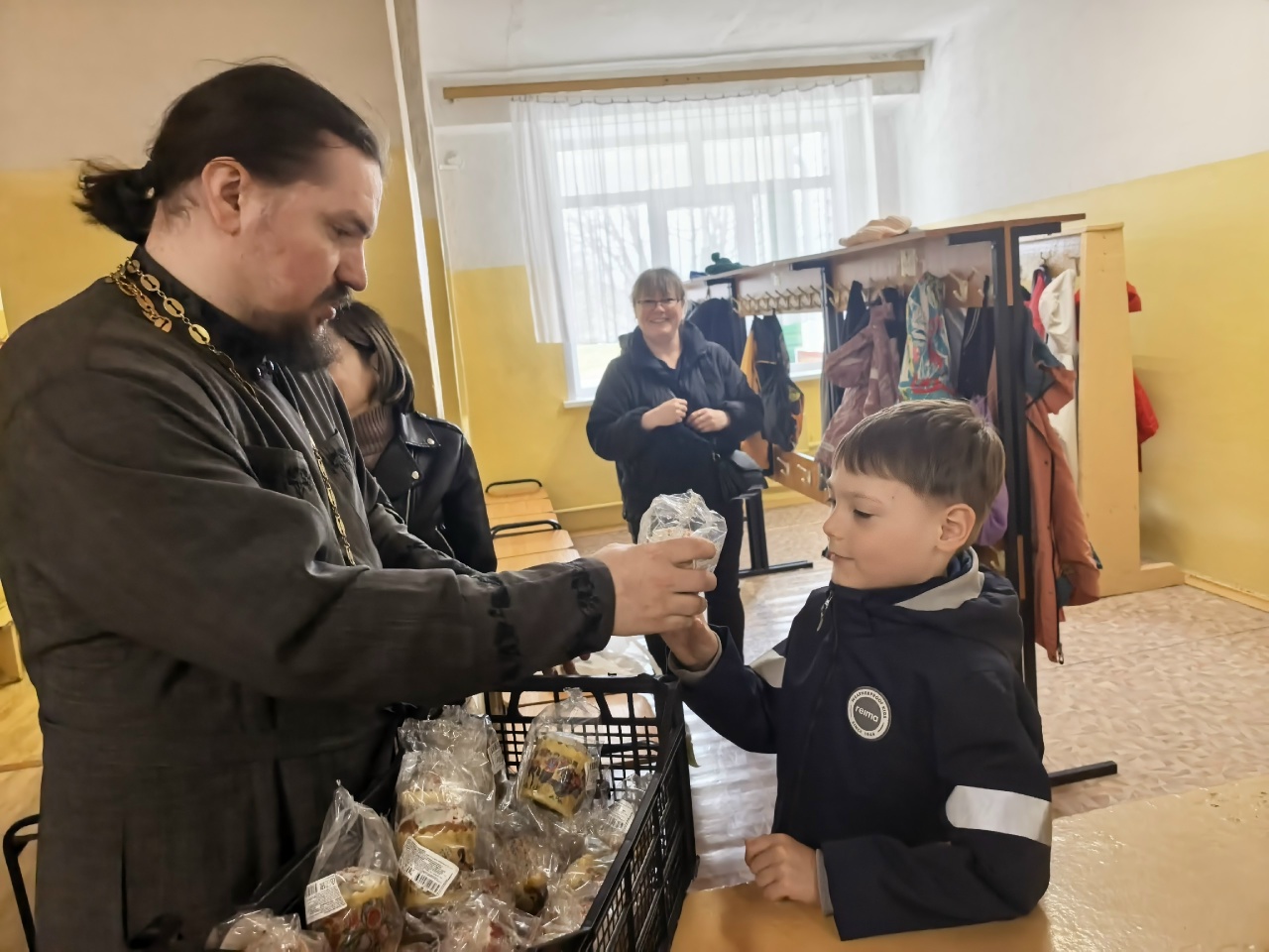 Особое внимание в рамках акции было уделено детям. Иерей Алексий посетил Самарскую школу, где вручил пасхальные куличи ученикам и поздравил их с праздником.