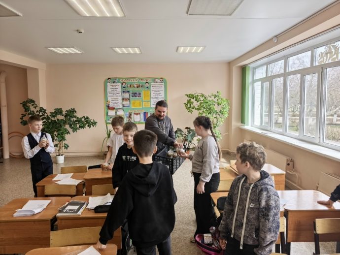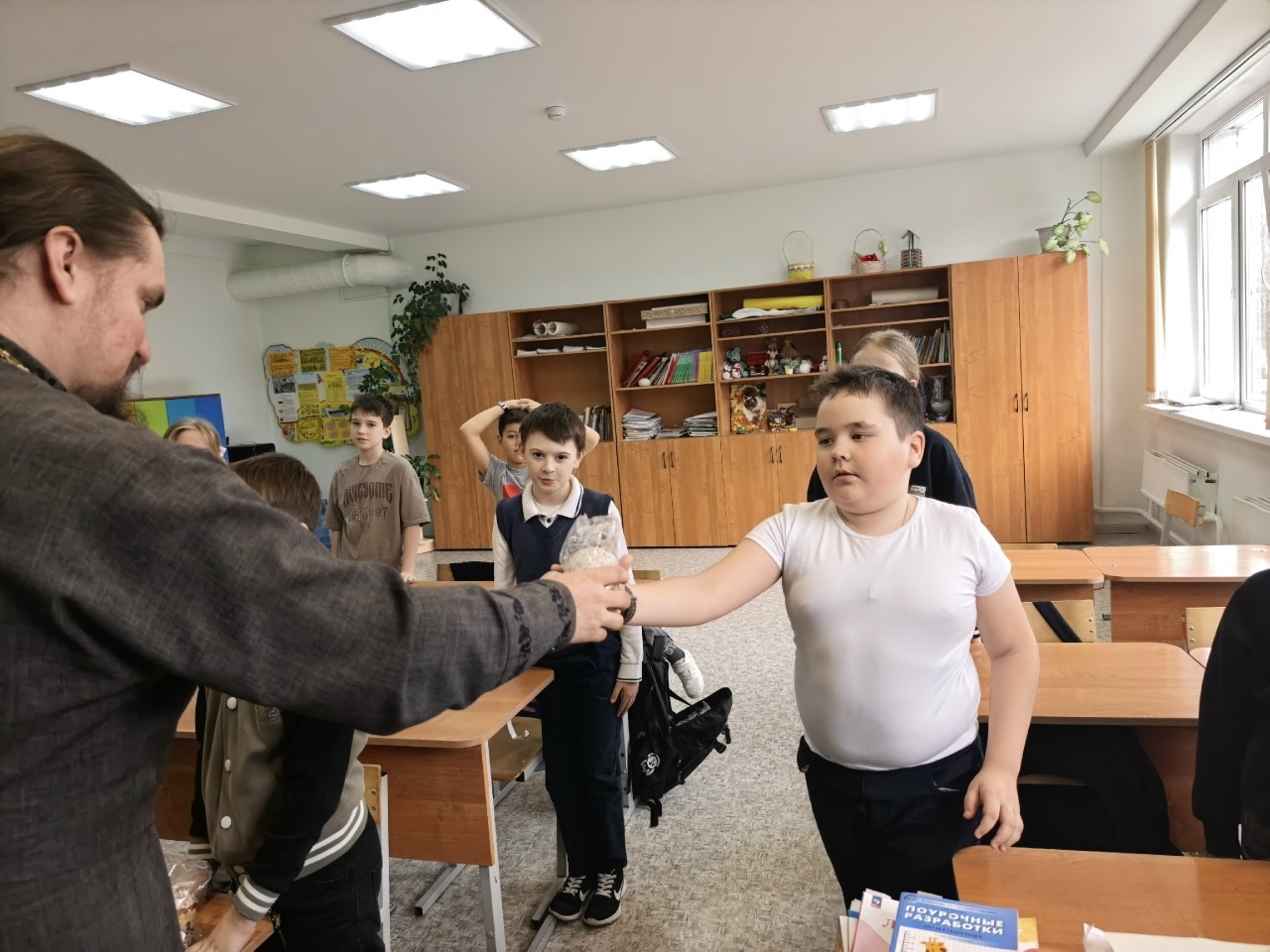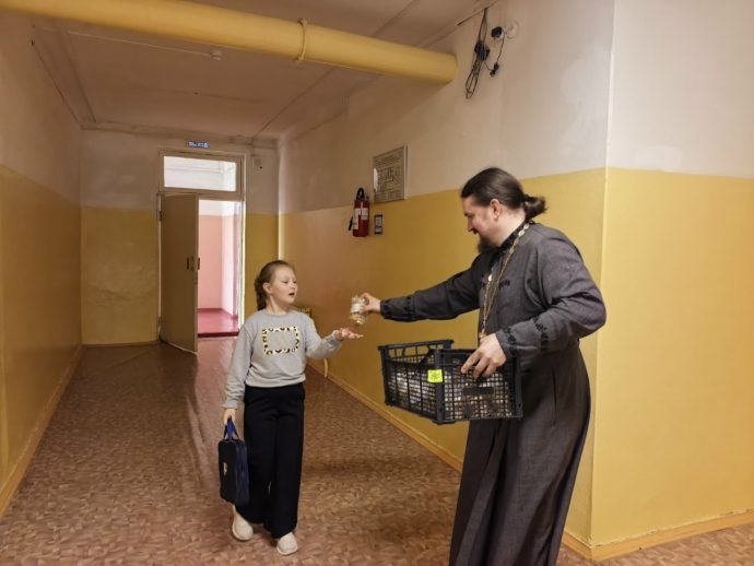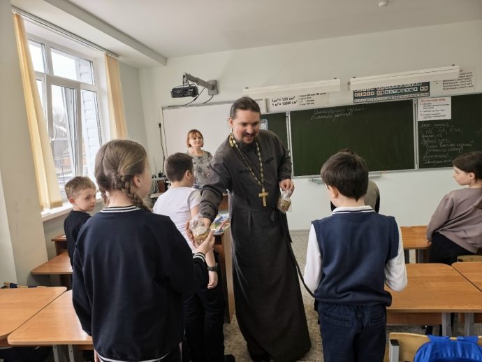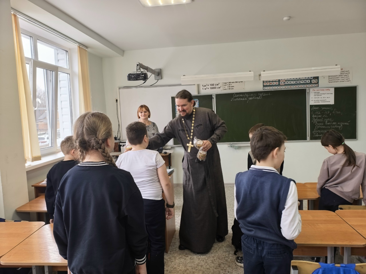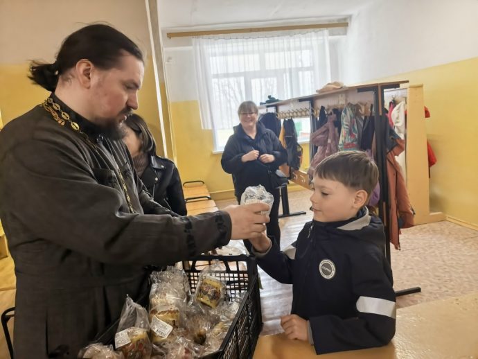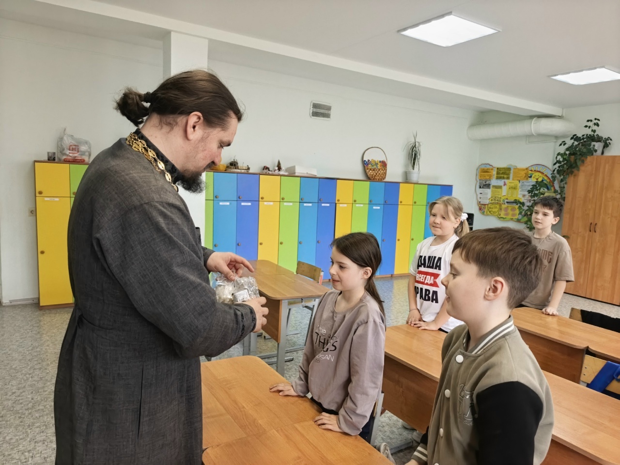 Особое внимание в рамках акции было уделено детям. Иерей Алексий посетил Самарскую школу, где вручил пасхальные куличи ученикам и поздравил их с праздником.