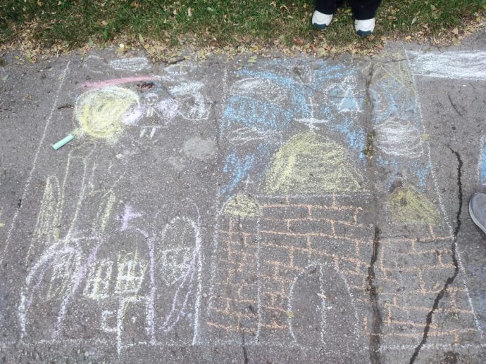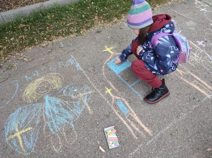 Директор воскресной школы Анна Гришаева поделилась: «В этом году нам очень повезло с погодой: дождь прервался прямо перед фестивалем, мы нашли сухой асфальт на территории храма и с удовольствием рисовали. В основном все рисовали храмы, купола и ангелов».