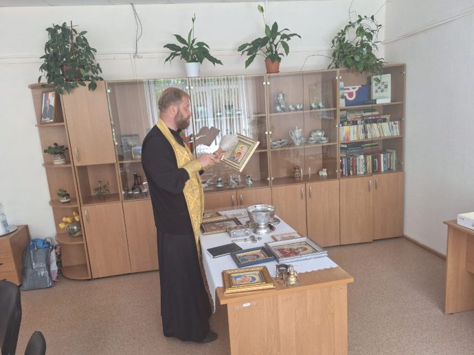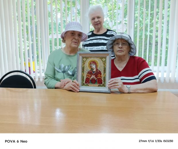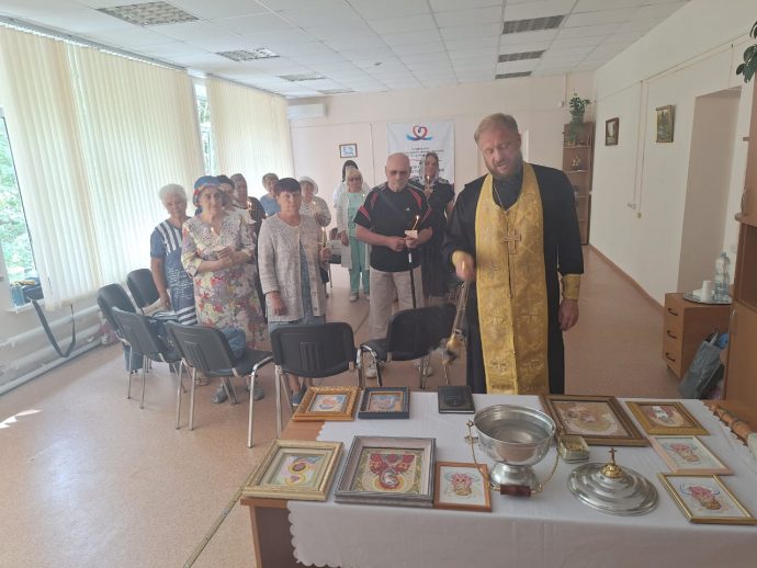 По благословению отца Павла Гребенкина мастерицы Центра вышили иконы, в которые вложили частицу своей души. Батюшка освятил образы, окропив святой водой во время молебна.