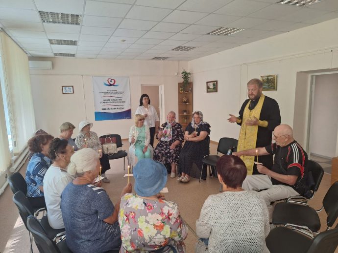 Настоятель храма святых первоверховных апостолов Петра и Павла села Новокрасивое иерей Павел Гребенкин посетил центр досуга старшего поколения «В ритме жизни» города Ефремова.