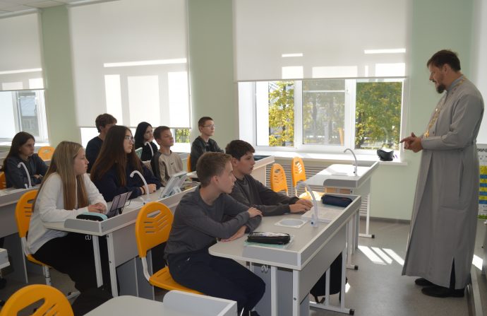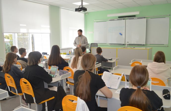 Настоятель Знаменского храма поселка Волово протоиерей Владимир Федак посетил Центр образования поселка Волово, где провел беседу о семье с учащимися 8-б класса.