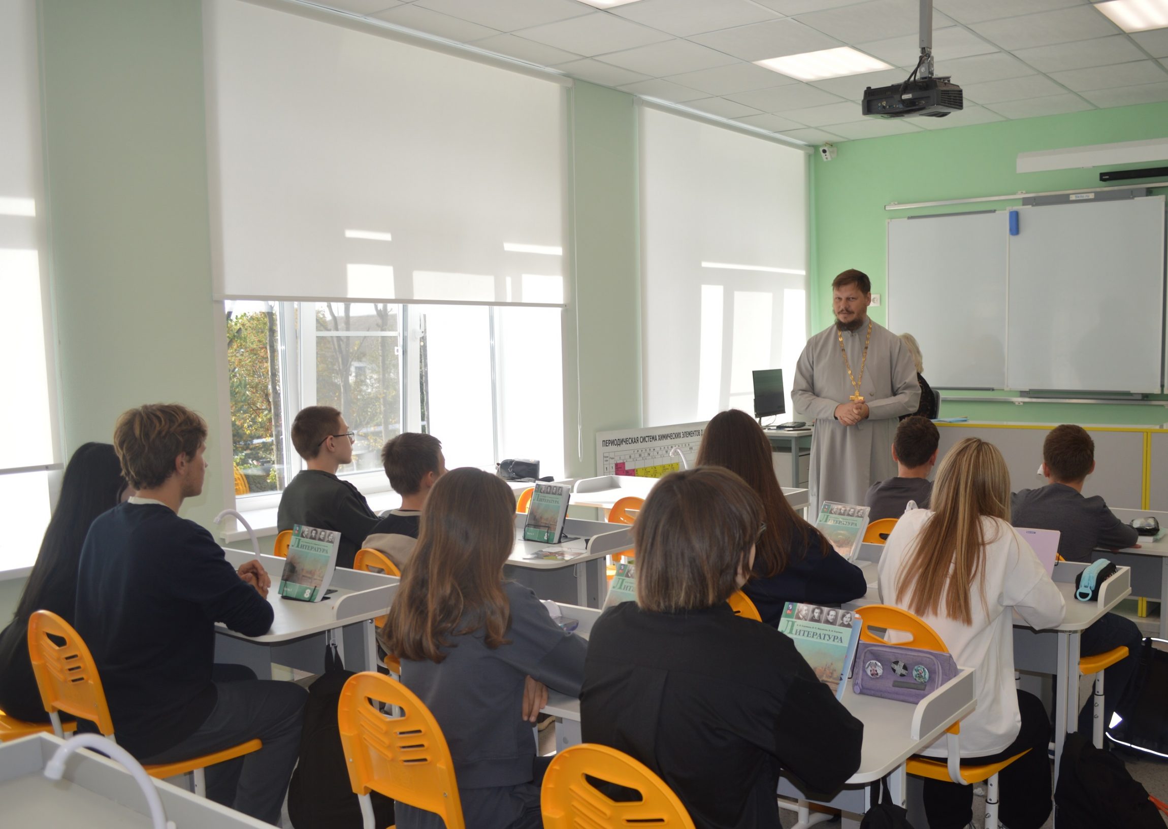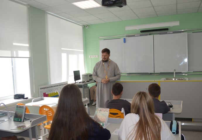 Батюшка духовно окормляет школьников в течение всего учебного года, а они всегда с нетерпением ожидают его прихода, потому что во время беседы учащиеся имеют возможность услышать рассказ о православной вере, получить ответы на волнующие вопросы, поделиться наедине с батюшкой своими переживаниями об учебе.