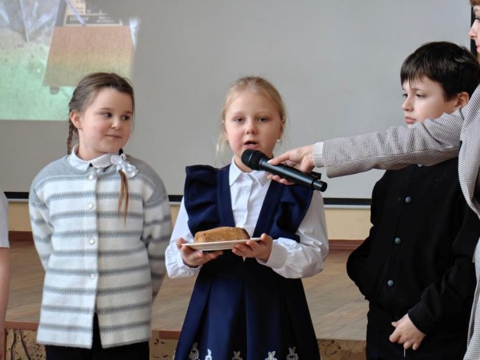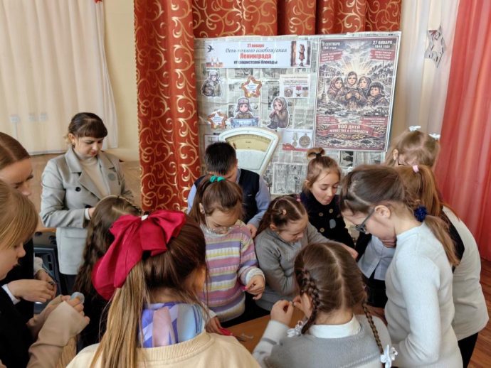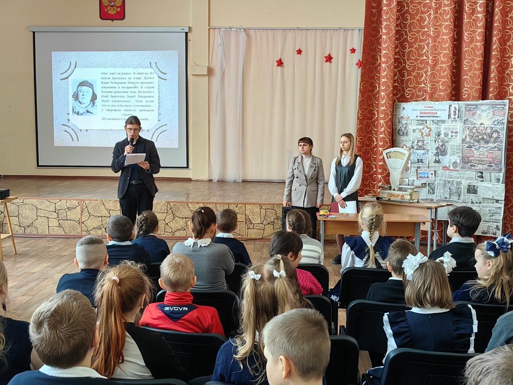 Память погибших в Ленинграде во время фашистской блокады ребята почтили минутой молчания.