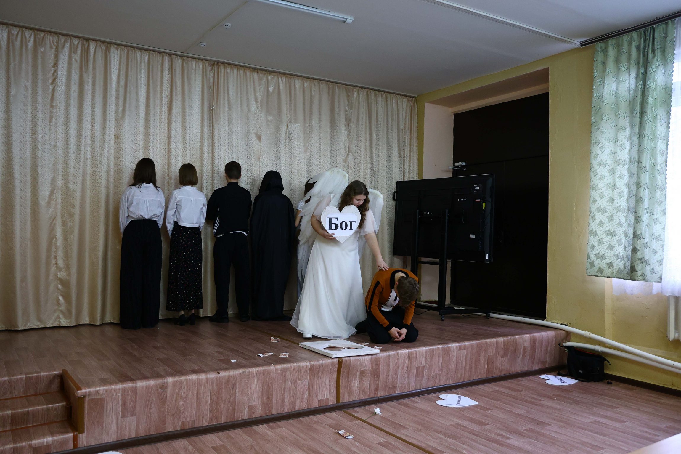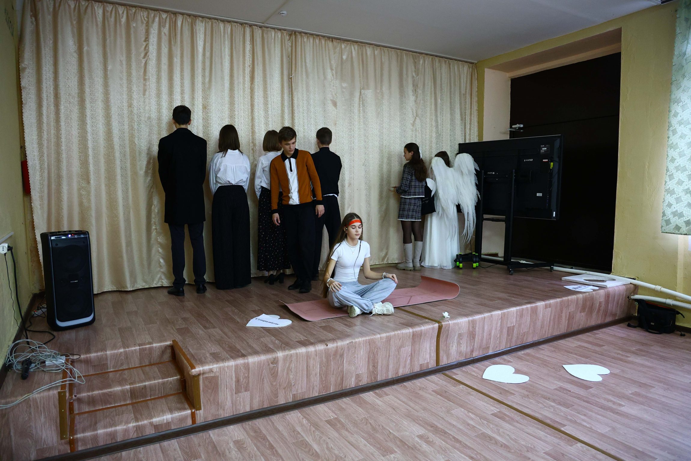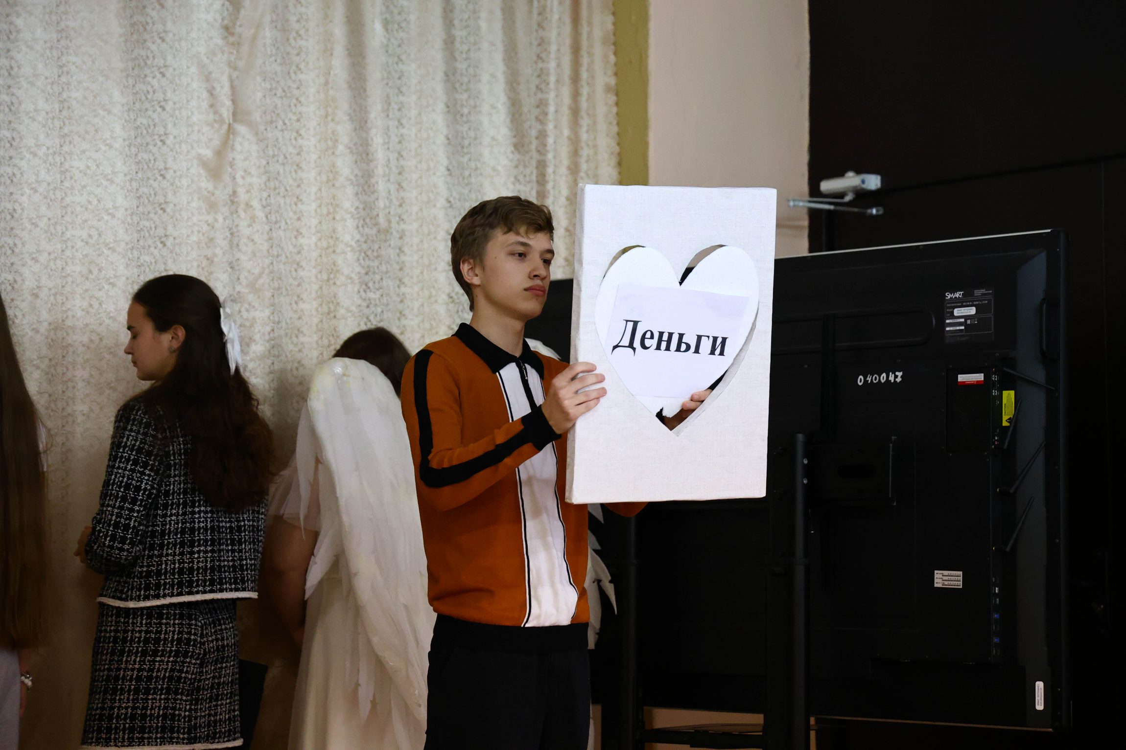 Зрителями стали учащиеся 10-11 классов гимназии: они внимательно и серьезно восприняли спектакль добровольцев. Постановка, посвященная нравственным законам жизни и поиску ее смысла, вызвала живой отклик в сердцах юных зрителей, заставив их задуматься над вечным вопросом: «Что в сердце твоем, человек?».