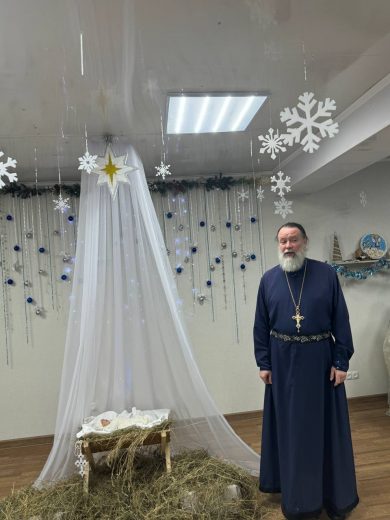 Перед началом представления с поздравительным словом ко всем собравшимся — детям, родителям, педагогам и гостям — обратился духовник школы, настоятель кафедрального собора в честь иконы Божией Матери «Взыскание погибших» протоиерей Анатолий Колонтаев. Он напомнил о величайшем значении праздника, о Божией любви, сошедшей на Землю, и пожелал всем, чтобы свет Вифлеемской звезды озарял их сердца и семьи.