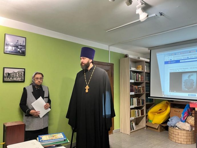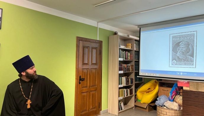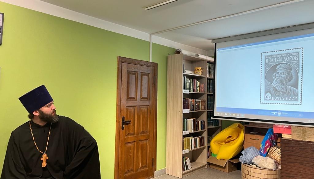 Открыла встречу библиотекарь Никольского храма Ирина Бугреева, которая рассказала учащимся воскресной школы о выходе первой печатной книги на Руси. Рассказ сопровождался показом слайдов и видеороликов, посвященных данной тематике.