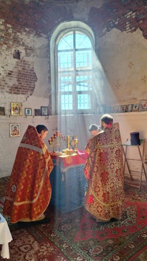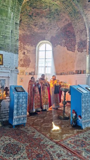 После Божественной литургии духовенство и верующие совершили крестный ход вокруг храма, после чего состоялась праздничная трапеза.
