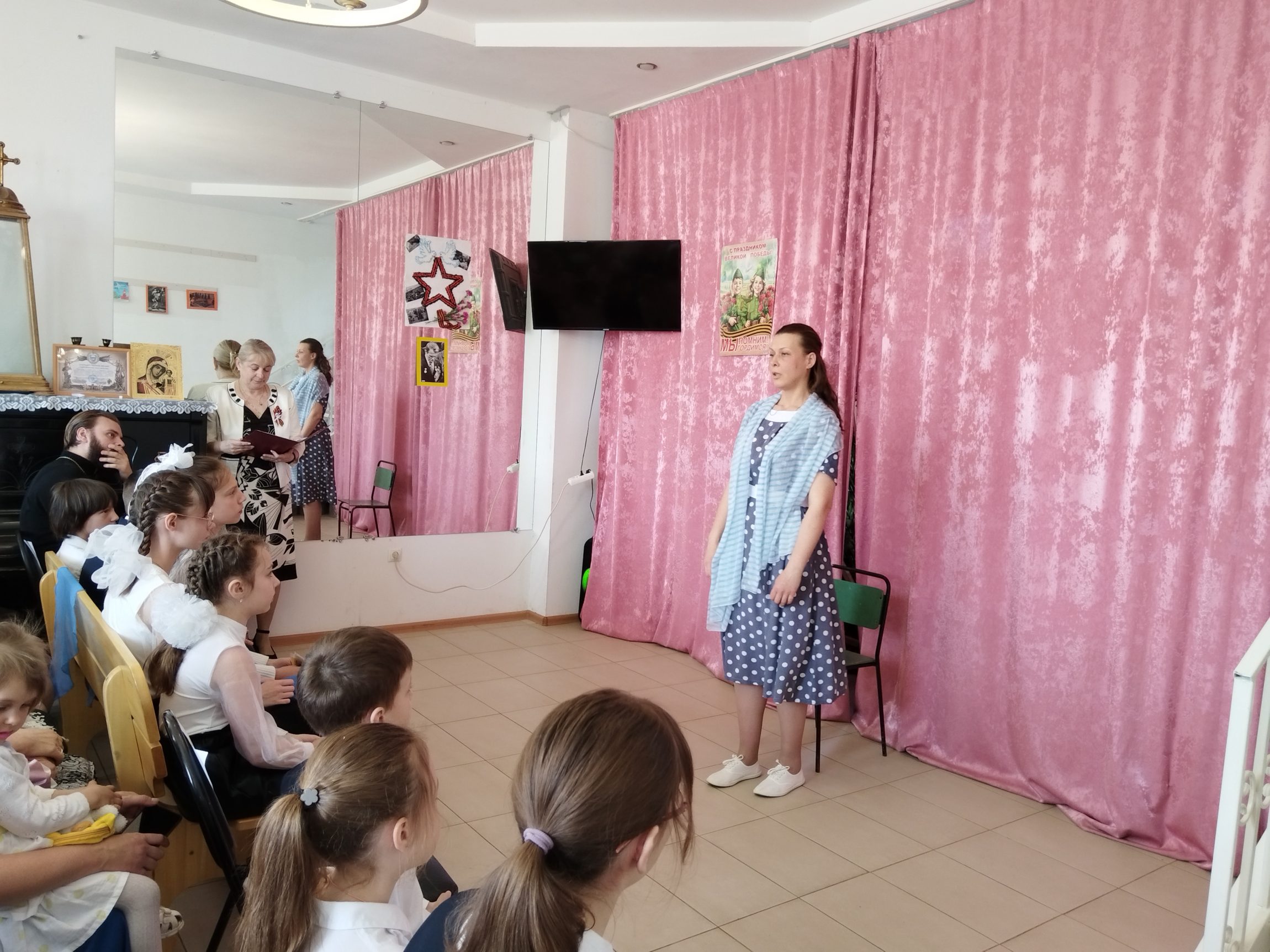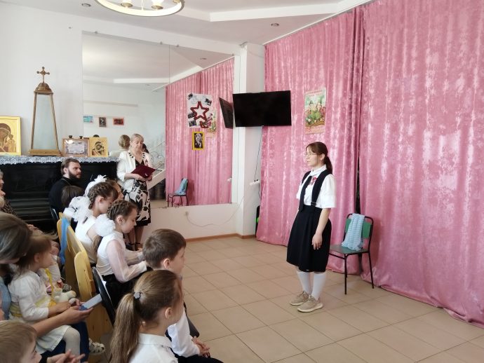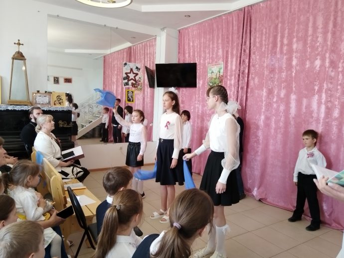 Воспитанники и преподаватели воскресной школы Свято-Казанского храма в Мясново подготовили праздничный концерт, посвящённый Дню Победы.