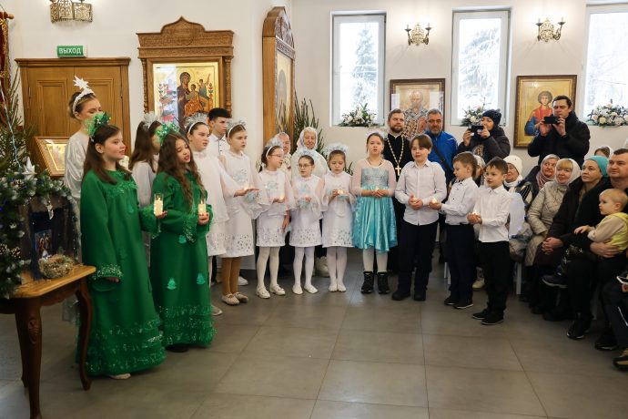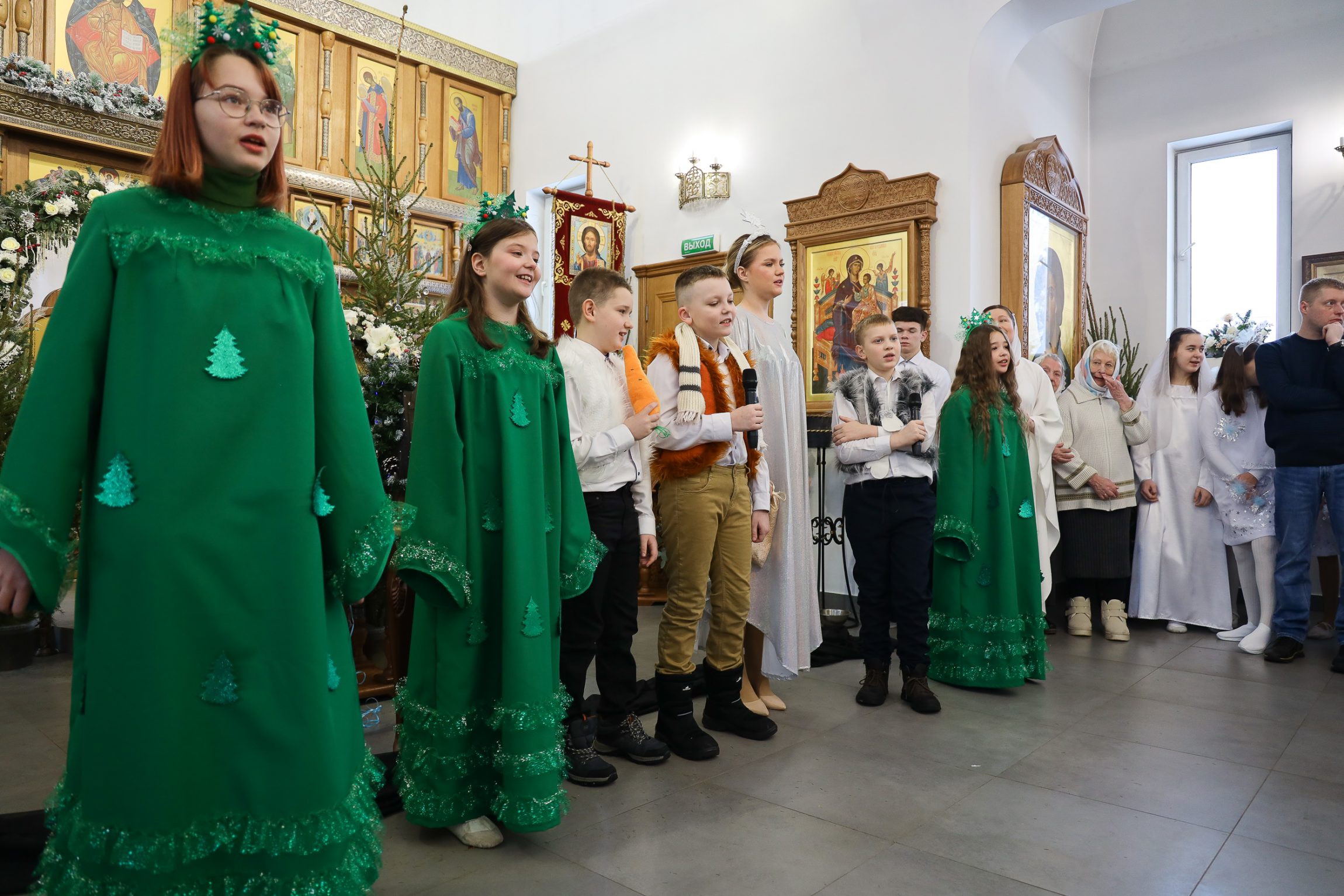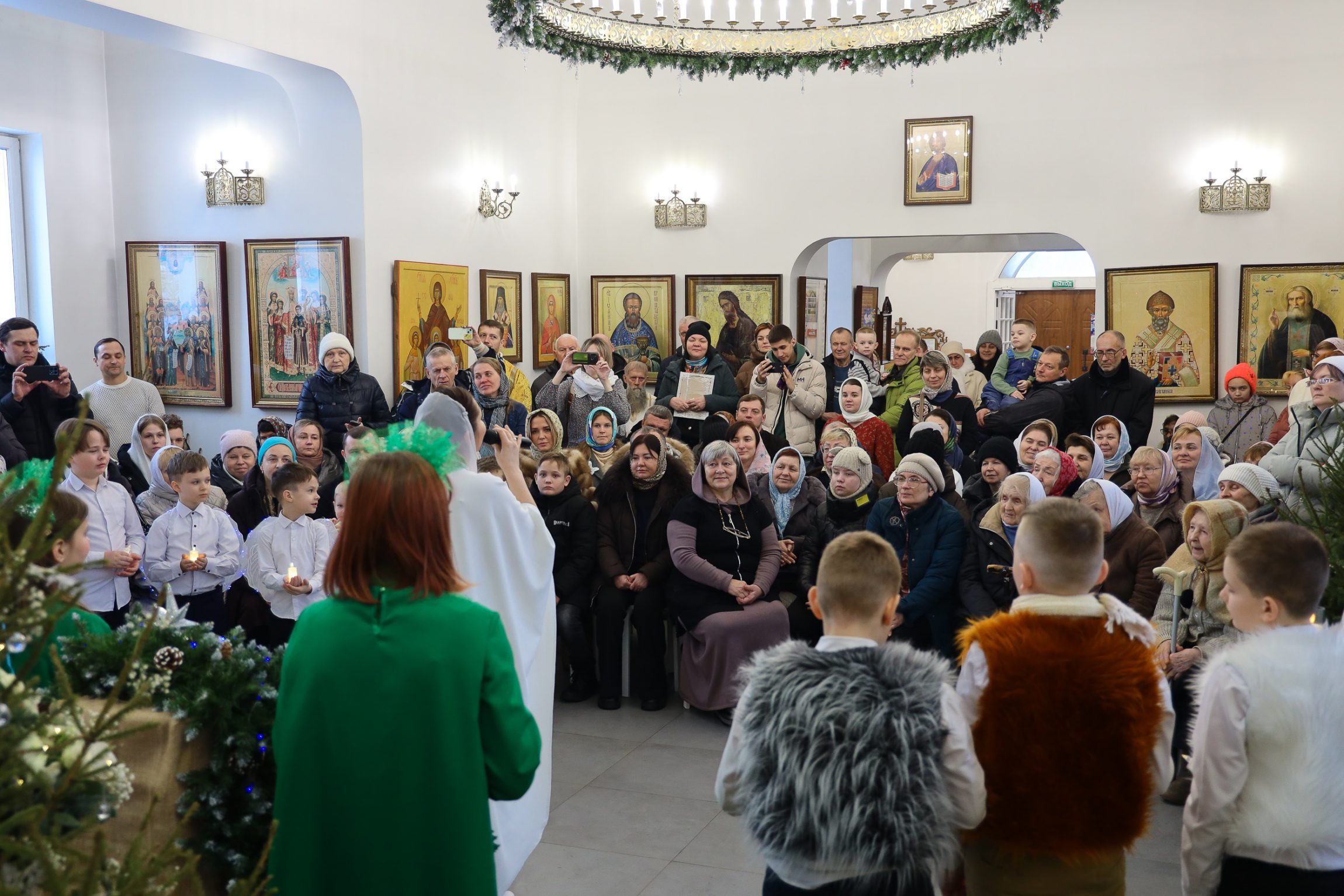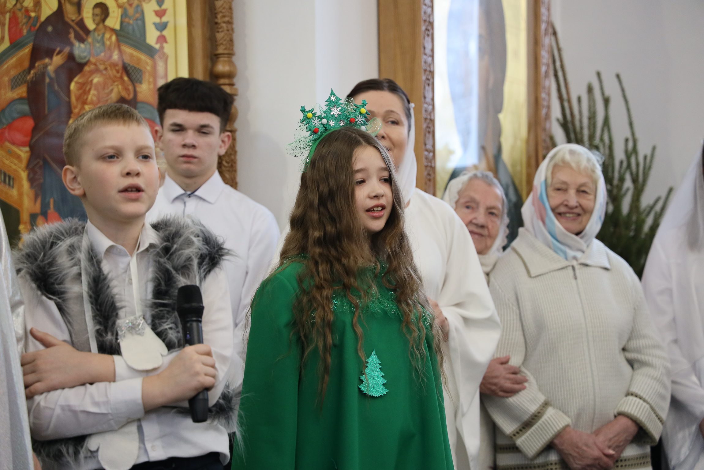 На святочной неделе воспитанники детской воскресной школы храма Всех Святых города Новомосковска поздравили прихожан с праздником Христова Рождества.