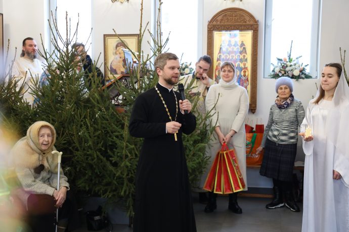 Отец Феодор поздравил детей с Рождеством Христовым, преподнес им сладкие подарки и пожелал никогда не терять веры в Бога, любить своих родителей, слушаться старших и помнить, что Господь всех любит и всегда пребывает рядом.