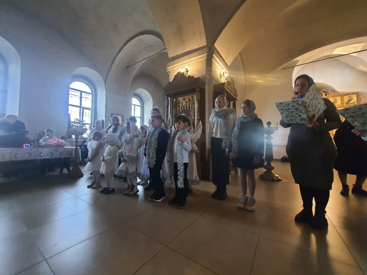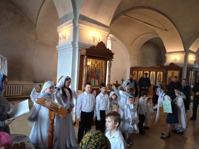 Затем батюшка пригласил всех на детский праздник, подготовленный ребятами в Никольском храме. Юные прихожане читали стихотворения, исполняли песнопения, посвящённые событиям праздника. Выступления детей были с вниманием и теплотой встречены гостями.