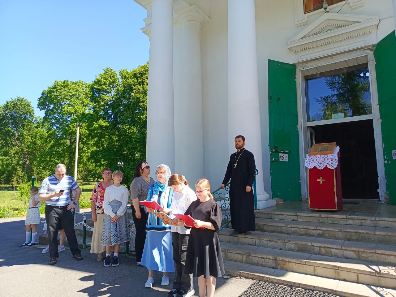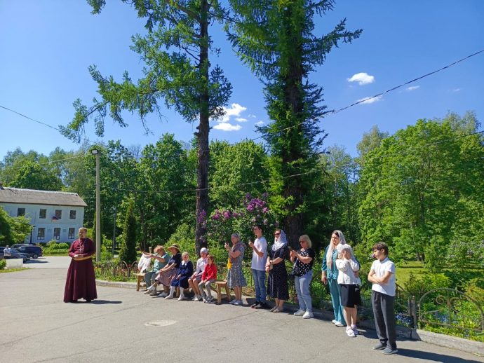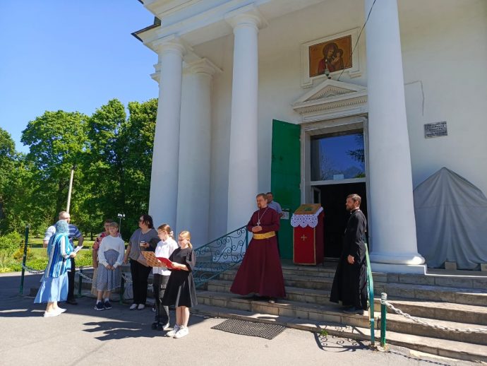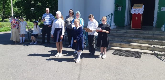 После Божественной литургии у храма, расположенного в живописном парке дворца-усадьбы графов Бобринских, состоялось мероприятие, посвященное создателям славянской азбуки, даровавшим миру познание истинного Бога, грамотность и духовное просвещение.
