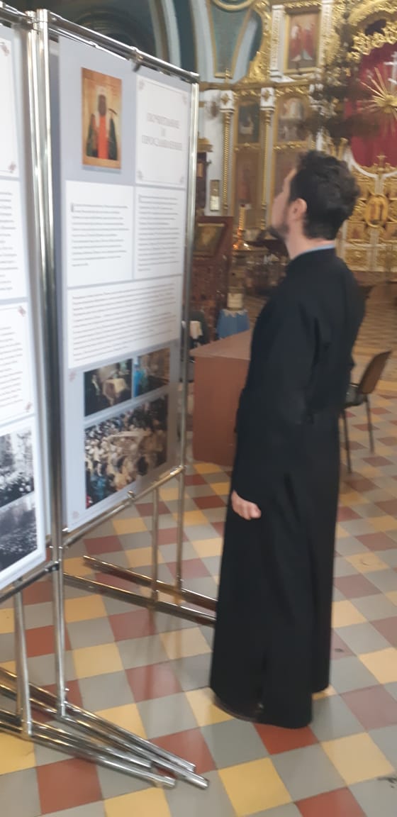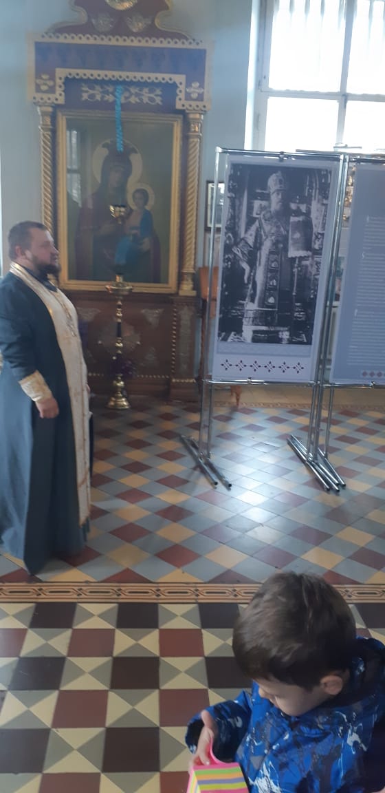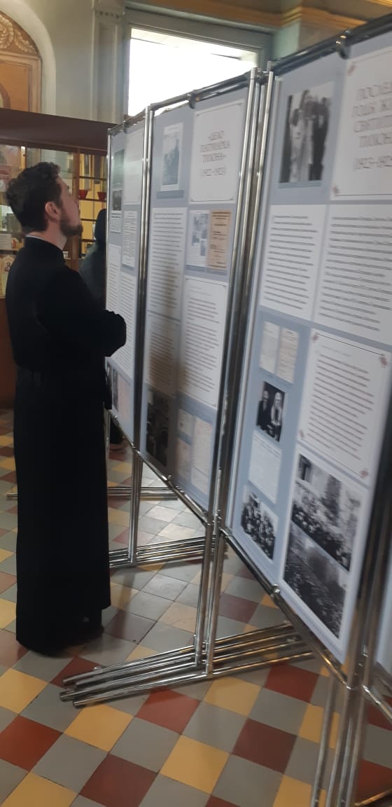 Клирик Казанского храма иерей Евгений Мелихов, основываясь на материалах выставки, состоящей из 15 глав, рассказал об исповеднической жизни святителя Тихона, его вере, верности Церкви, мужестве и твердости в стоянии за истину: «Избранный Всероссийским Поместным Собором на престол Московских Патриархов после двухсотлетнего перерыва, святитель Тихон стал выразителем чаяний Русской Церкви. 7.5 лет нес он нелегкий крест Первосвятительского служения, нес, не взирая ни на какие трудности и испытания, нес, памятуя о высокой ответственности и долге Предстоятеля Церкви быть верным Христу даже до смерти».