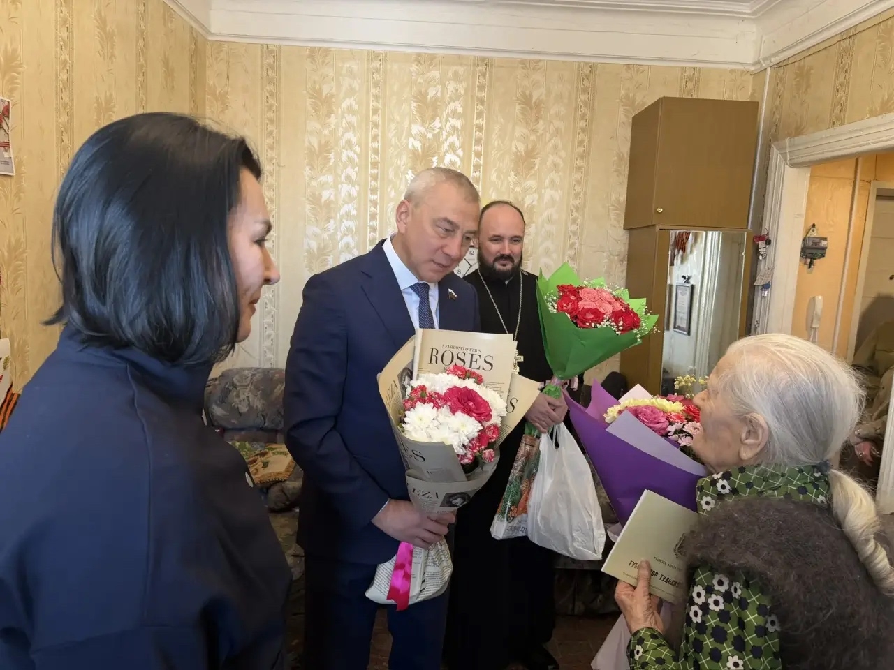Благочинный Ефремовского округа иерей Вячеслав Слепнёв совместно с главой администрации Ефремовского округа Светланой Давыдовой и депутатом Тульской областной думы Сергеем Балтабаевым поздравил ветерана Великой Отечественной войны со 104-м днём рождения.