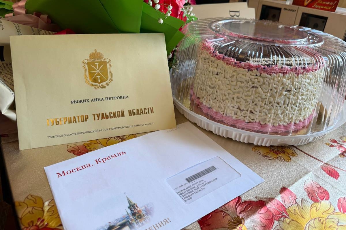Гости также передали Анне Рыжих поздравительные открытки от Президента Российской Федерации и губернатора Тульской области Дмитрия Миляева.