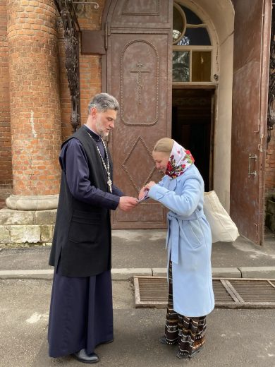 Для прихожан храма была организована раздача информационных листовок, подробно рассказывающих об истории и христианском смысле одного из главных церковных торжеств.