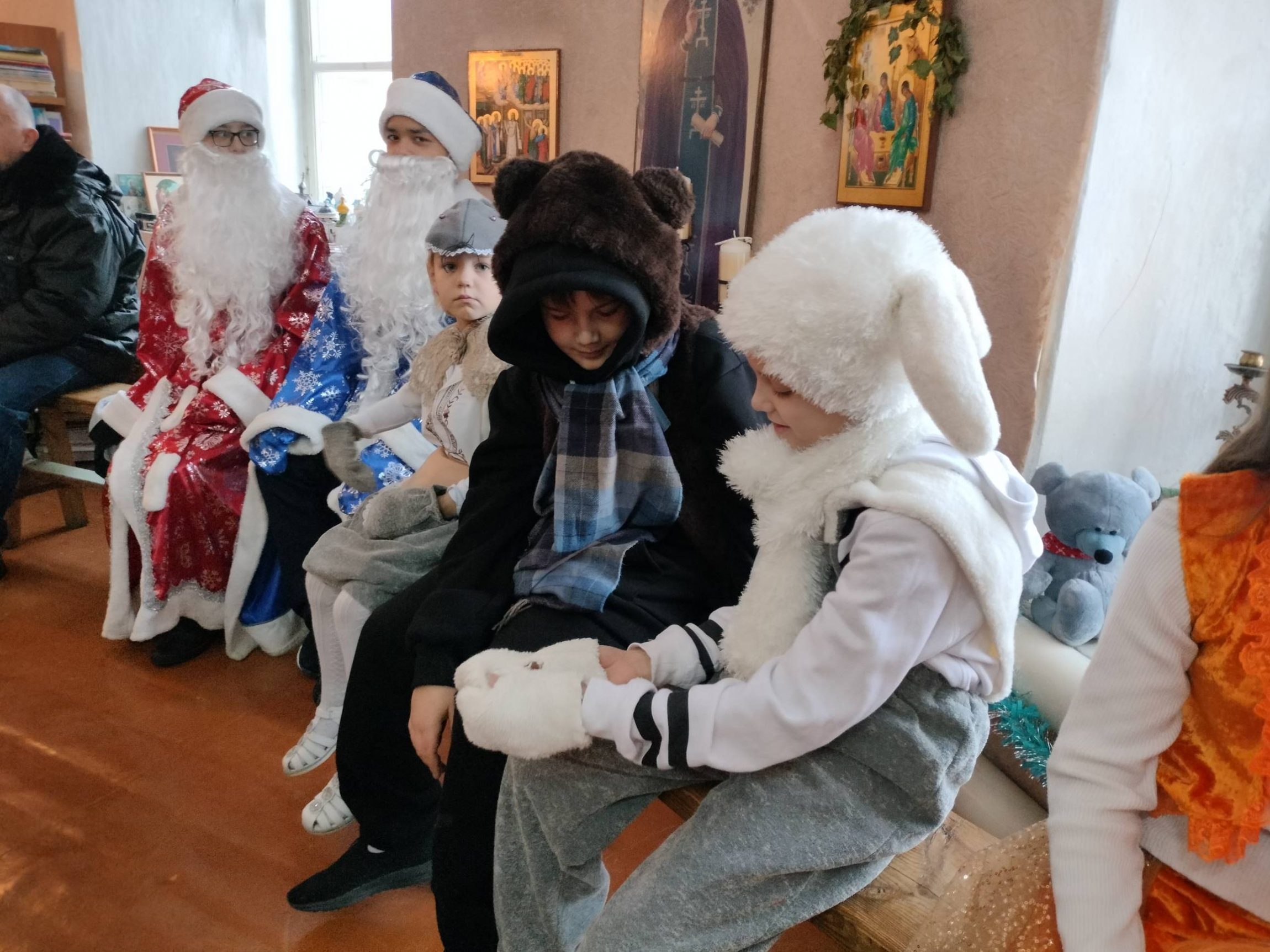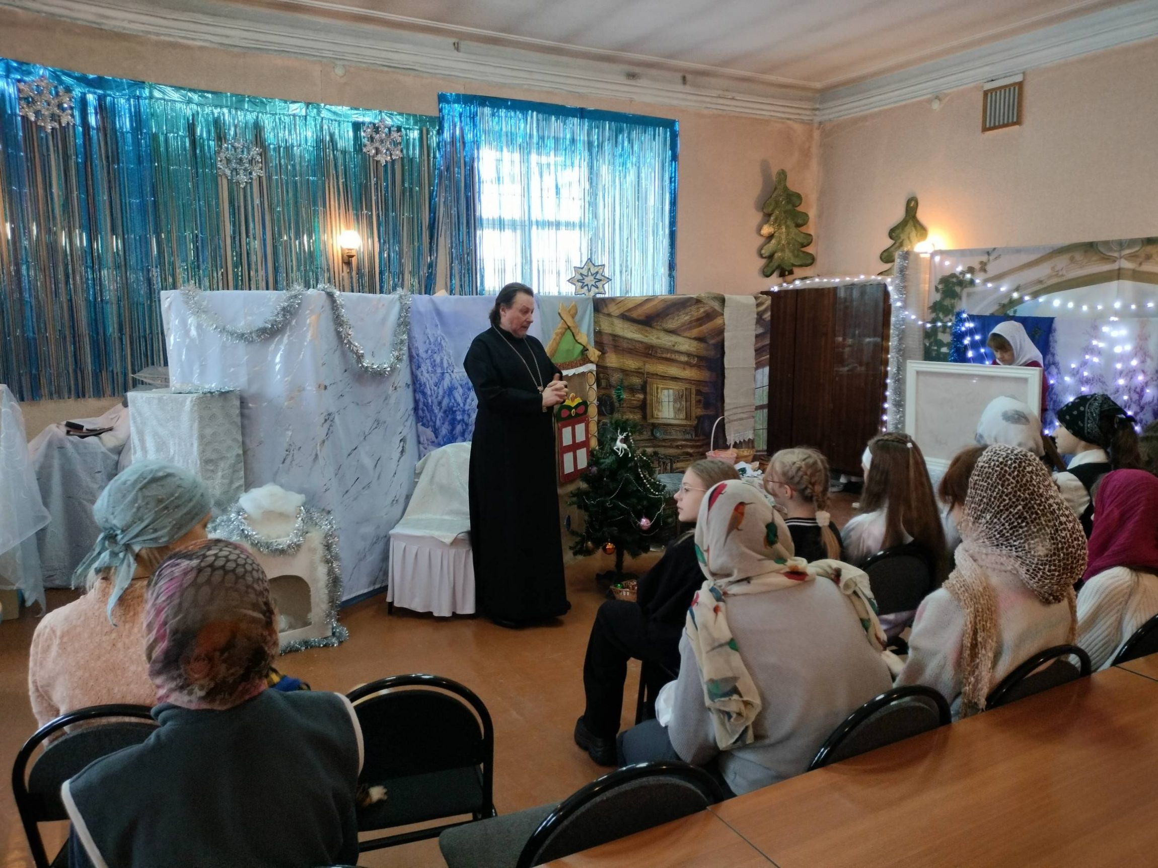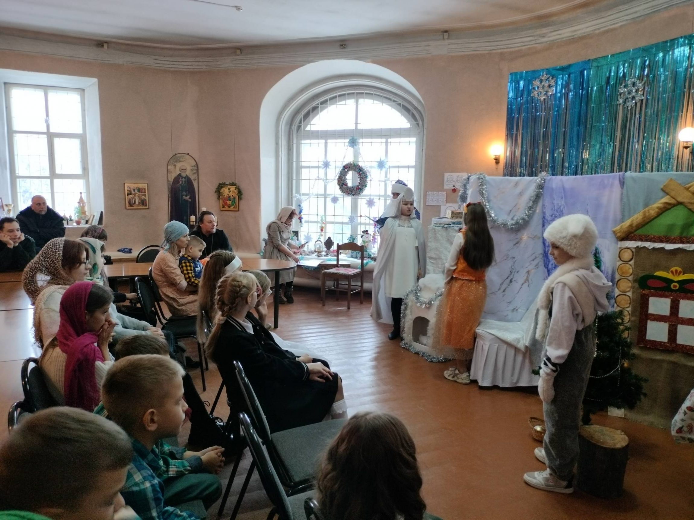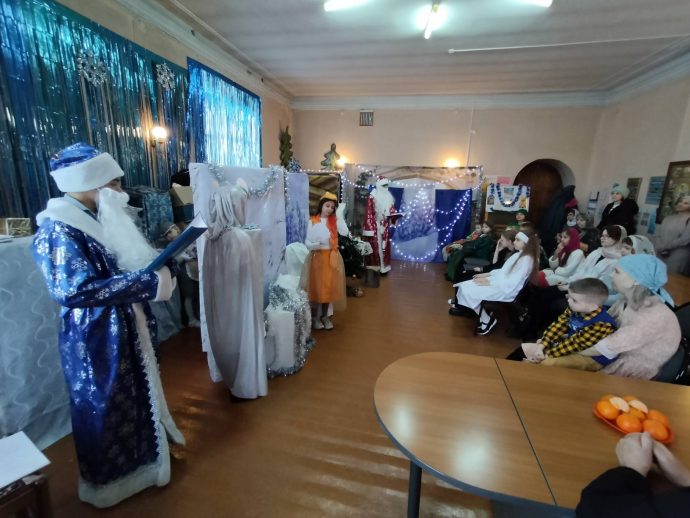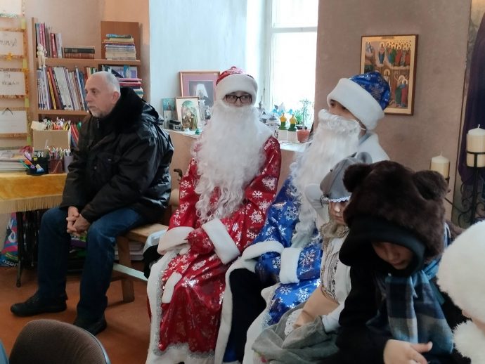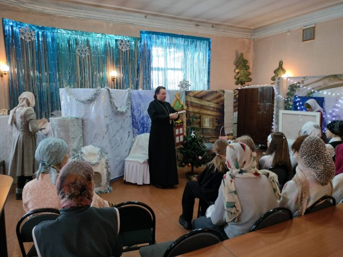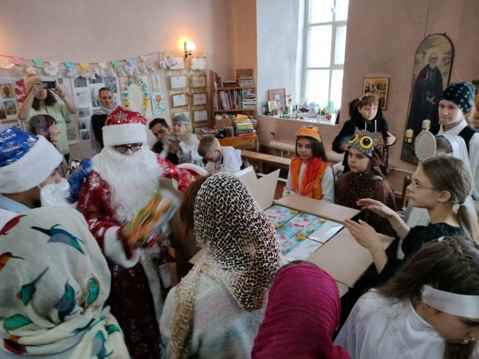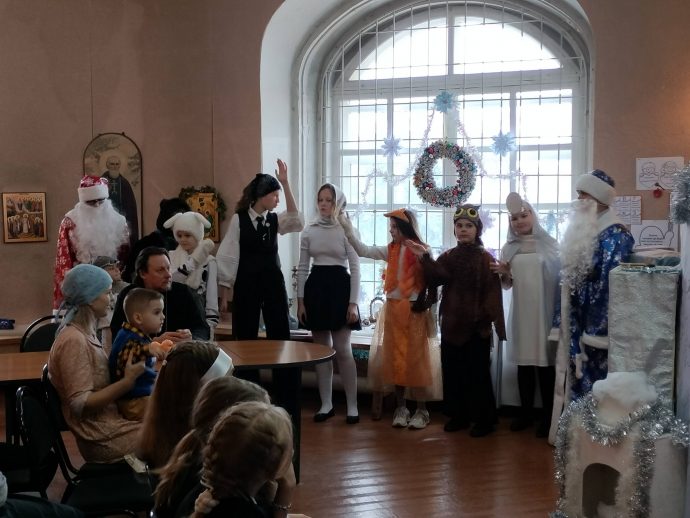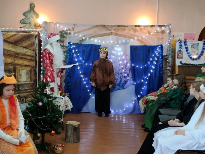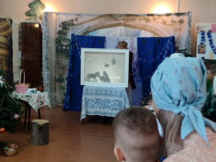 Программа детского праздника в честь Рождества Христова состояла из трёх частей. В первой части самым юным прихожанам Успенского храма с помощью театра теней была рассказана евангельская история рождения Богомладенца Иисуса Христа в пещере близ города Вифлеема.