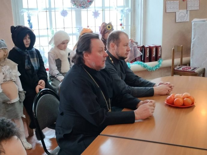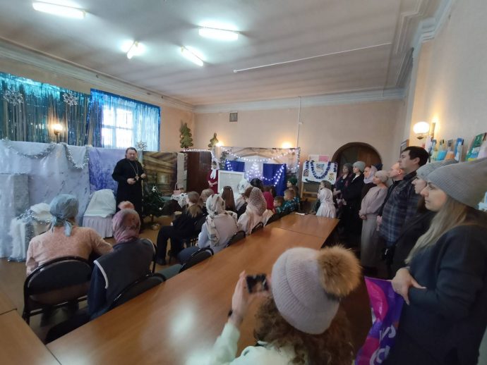 Утренник посетил благочинный Узловского района, настоятель Успенского храма игумен Силуан (Ершов). Он поздравил учеников воскресной школы с праздником Рождества Христова и святыми днями, поблагодарил ребят за помощь в украшении Никольского придела храма к Новому году и Рождеству.
