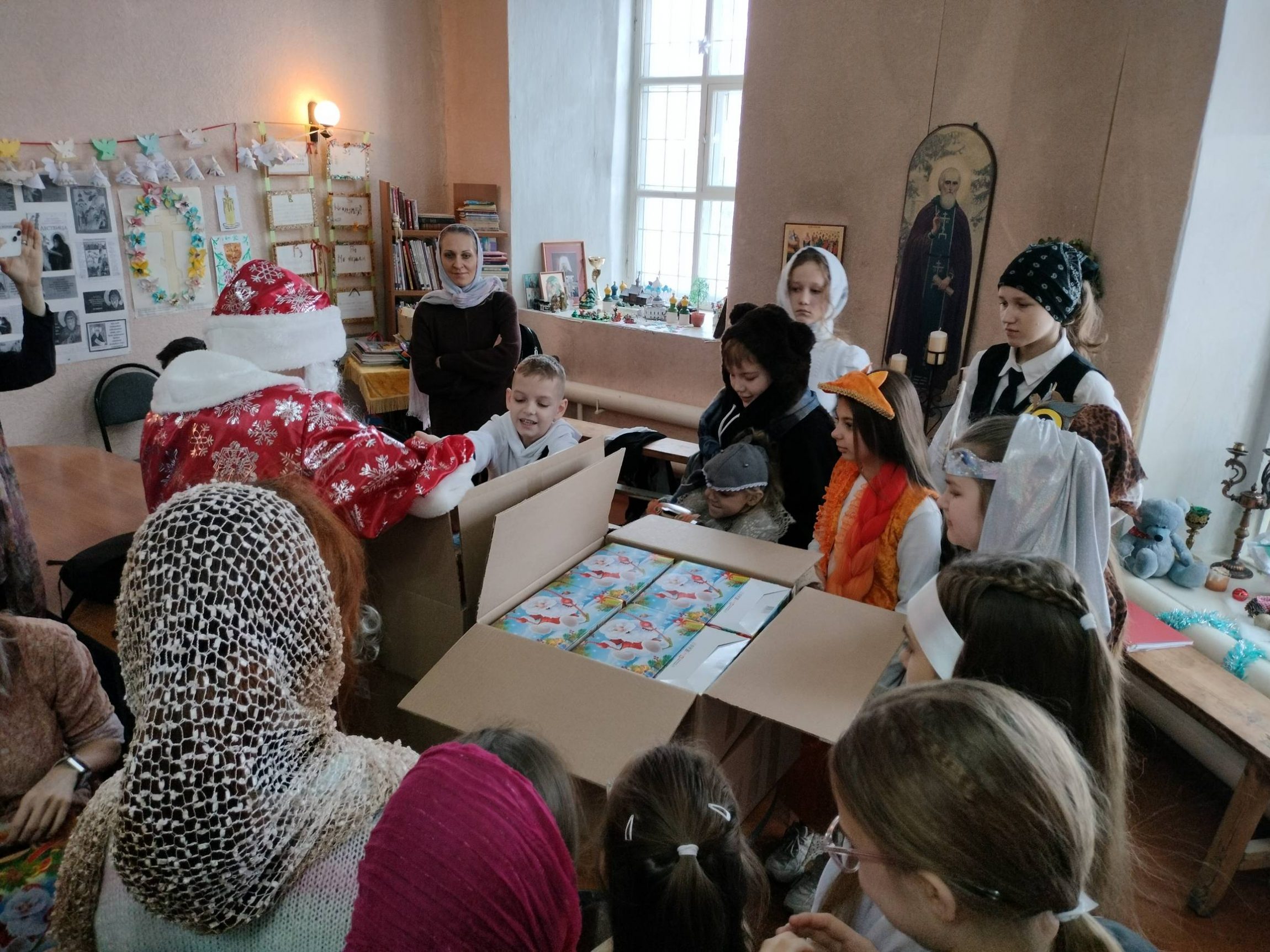 По доброй традиции каждому участнику утренника был вручен сладкий подарок от прихода Успенского храма.