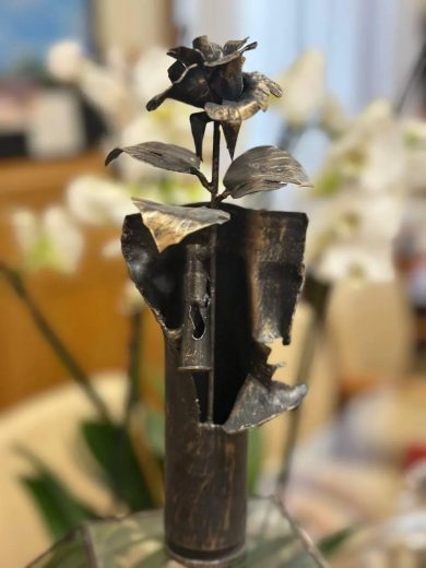 В конце февраля бойцы подарили волонтерам «розы Донбасса» — розы, выкованные кузнецами из гильз, привезенных с передовой.
