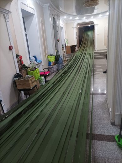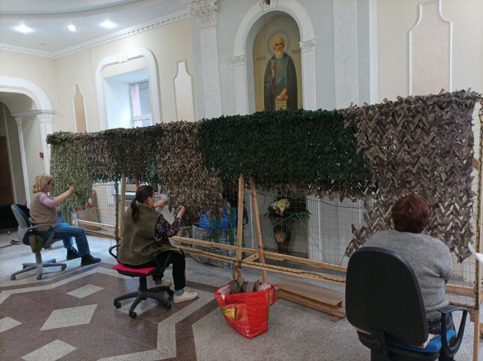 Труды эти измеряются уже и конкретными цифрами. С момента начала плетения на приходе изготовлено 18 539 квадратных метров маскировочных полотен. Чтобы осознать этот объем, достаточно представить, что площадь территории самого храма составляет 12 500 квадратных метров — этой сетью можно накрыть всю территорию с прилегающим сквером. В феврале было сделано порядка 40 сетей. Из одного рулона ткани (500 кв. м) получается около 6,5 сетей.