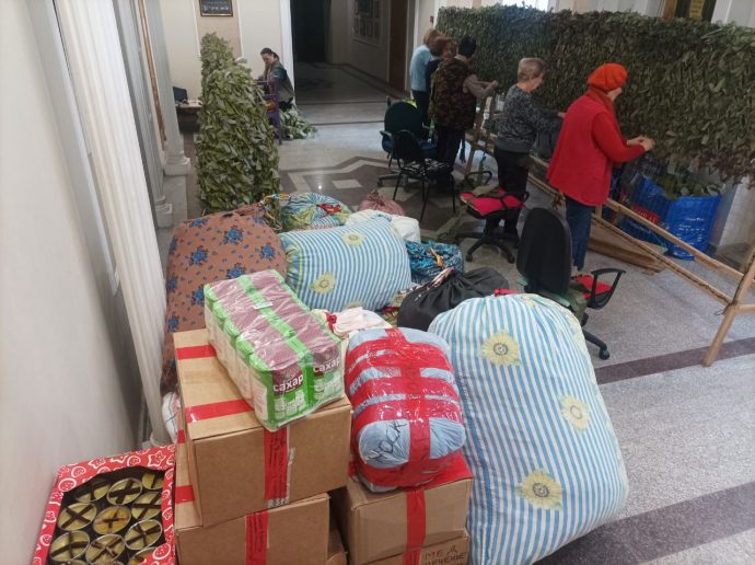 «У нас очень много неравнодушных людей, – продолжает Ирина. – Например, бабушки на приходе иерея Александра Милянцева в Рождественском поселке делают окопные свечи. Он их организовал, они тоже пирожки пекут, и свечи льют. И отец Александр регулярно привозит нам плоды их трудов. Раз в месяц – по шесть, по восемь коробок. А еще у нас отец Вячеслав благословил собирать с канона воинам печенье, конфеты и другие не скоропортящиеся продукты. Бабушки наши вяжут носки, обязательно вкладывают внутрь шоколадочку. В посылки женщины кладут разные вкусные консервы – сгущенку, тушенку. Еще отправляем воинам тактические сидушки – квадратные и круглые коврики, сделанные своими руками. И пульверизаторы обязательно кладем, чтобы ребята могли сеть побрызгать, под цвет местности подогнать, чтобы не было белого пятна. Можем и свитер теплый положить: все с душой, все с молитвой».