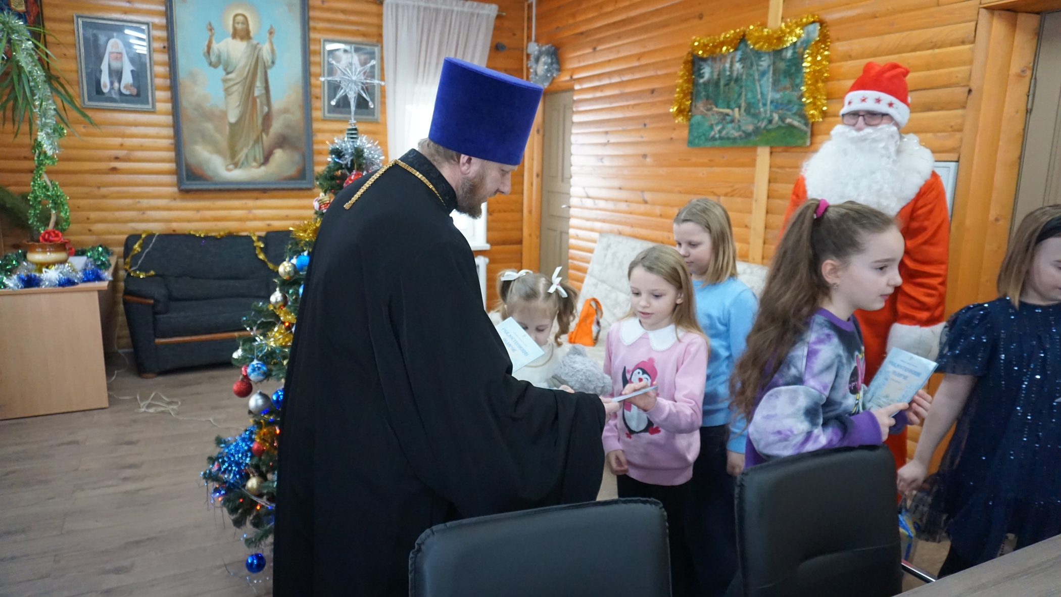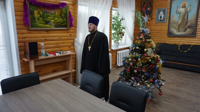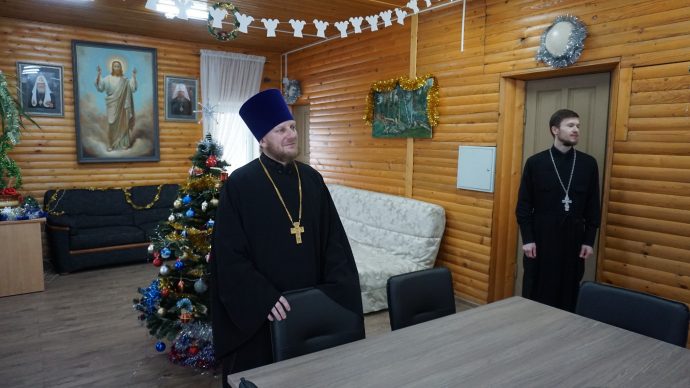 Затем всех присутствующих поздравил настоятель Вознесенского храма протоиерей Павел Картушин и объяснил, в чем отличие светского праздника Нового года от исторического события Рождества Христова: