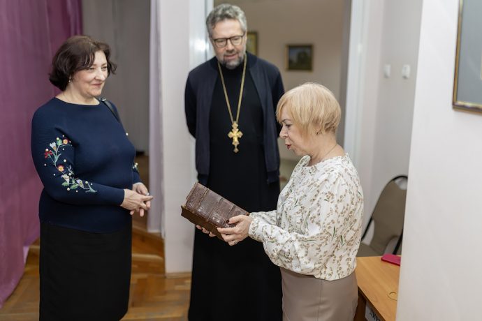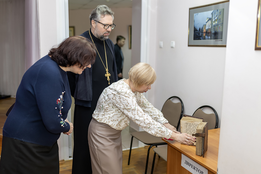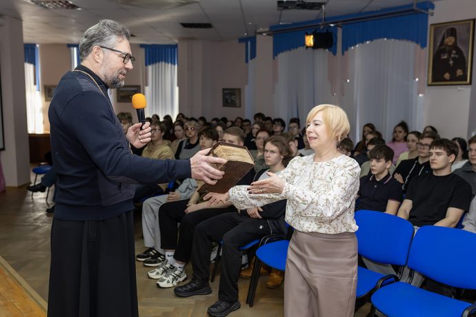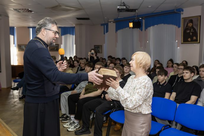 Открыл встречу благочинный Новомосковского округа протоиерей Владимир Лысиков: «У меня в руках православная книга, Псалтирь, которая оказалась у меня совершенно чудесным образом: была найдена на просторах интернета и прислана из Владивостока». Отец Владимир преподнес ее в дар библиотеке и посоветовал ребятам чаще приходить в отдел редких книг, где теперь будет находиться и это старинное издание.