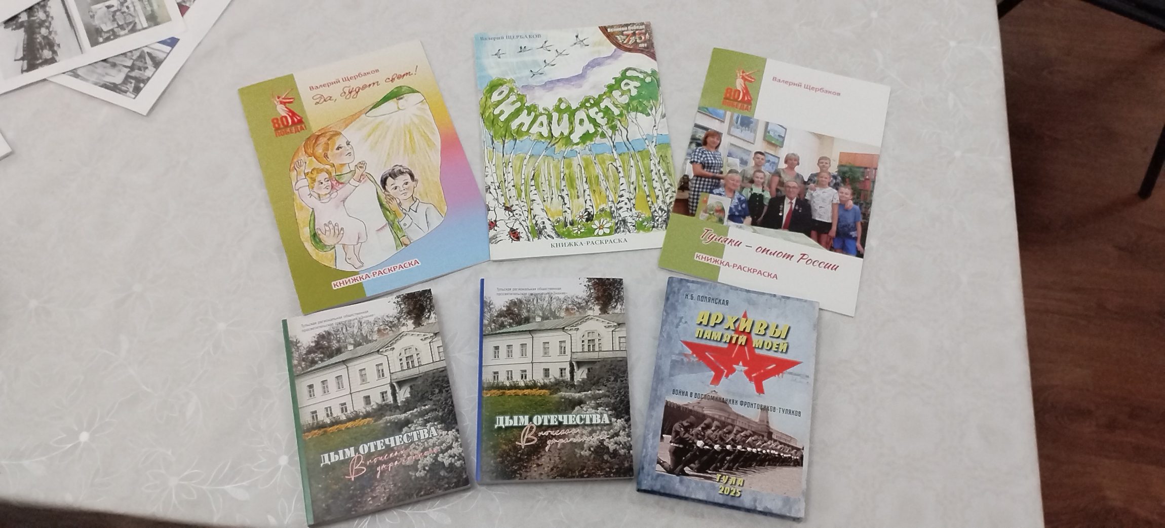 Также я работаю заместителем председателя Тульского отделения Общества «Знание». Мы издаём «Тульский краеведческий альманах», уже выпущено 16 номеров. Совместно с ветеранскими организациями выпустили книгу «Архивы памяти моей» с воспоминаниями очевидцев войны. Таких людей остаётся всё меньше, и наша задача — донести правду до молодёжи без искажений. Для этого мы, как и Валерий Леонидович со своими книгами, проводим уроки мужества.