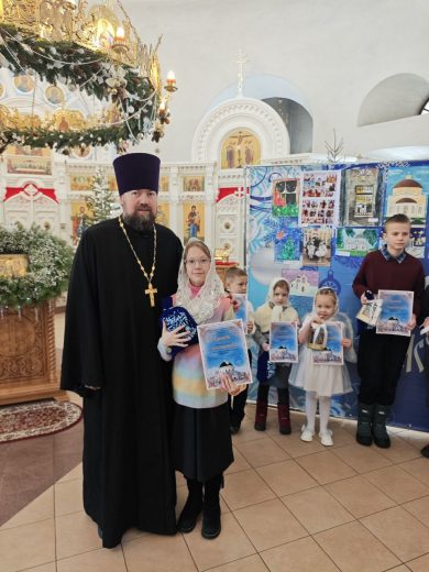 Мероприятие началось по завершении Божественной литургии. Настоятель храма иерей Николай Авдуловский поздравил участников конкурса с наступившими праздниками Рождества Христова и Крещения Господня, поблагодарил за труды и вручил грамоты и сладкие подарки. Награждение проходило по двум номинациям: рисунок и фотография. Отец Николай также отметил грамотой студию развития и досуга «СуперДетки» за постоянное участие воспитанников в конкурсах.