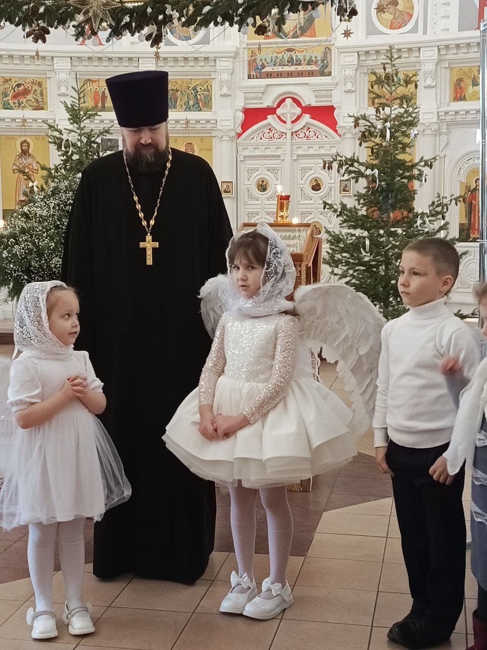 Затем маленькие прихожане храма порадовали присутствующих своим выступлением: прочитали стихотворения о Рождестве, а Антонина Блошихина спела песню.