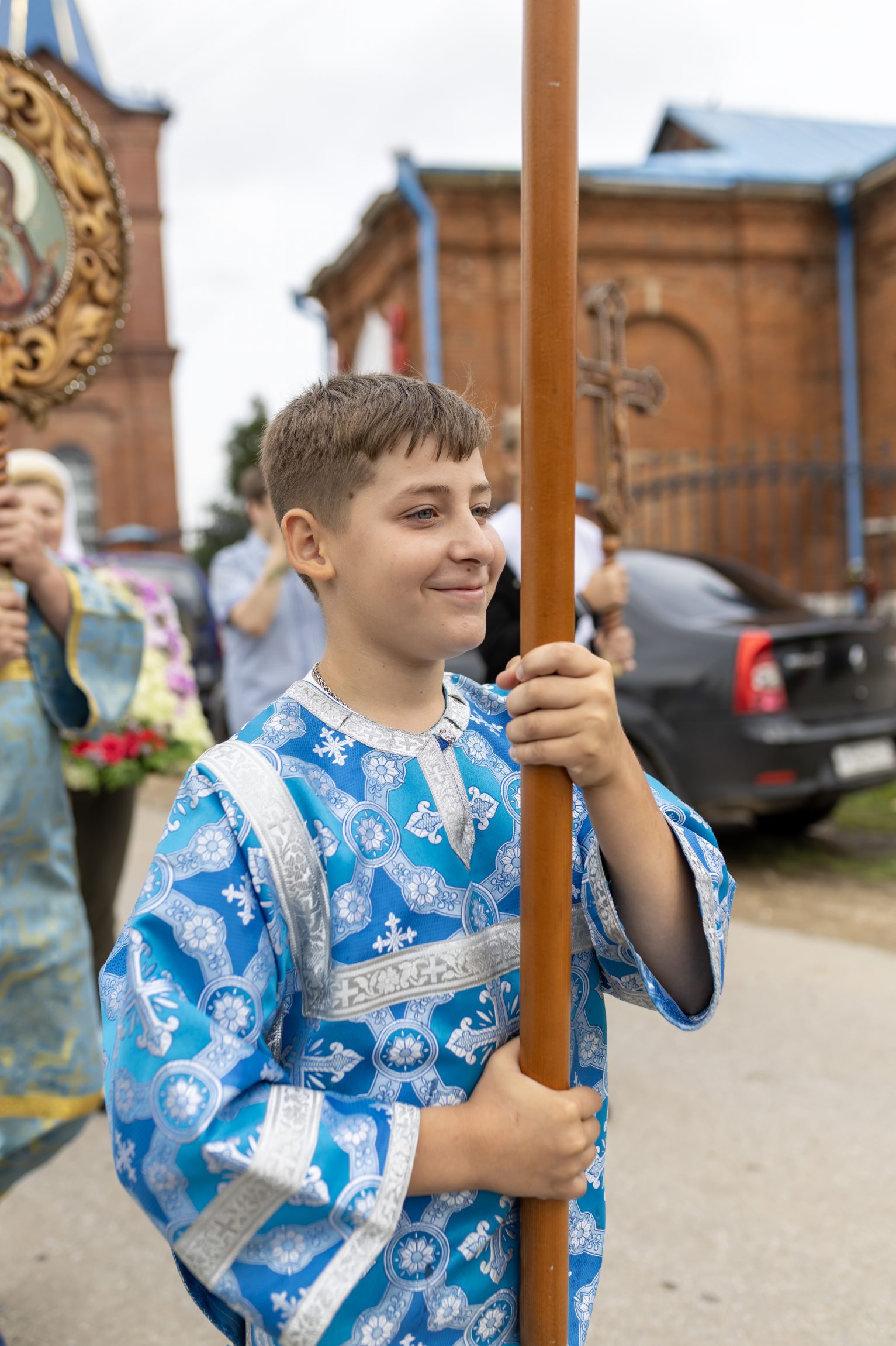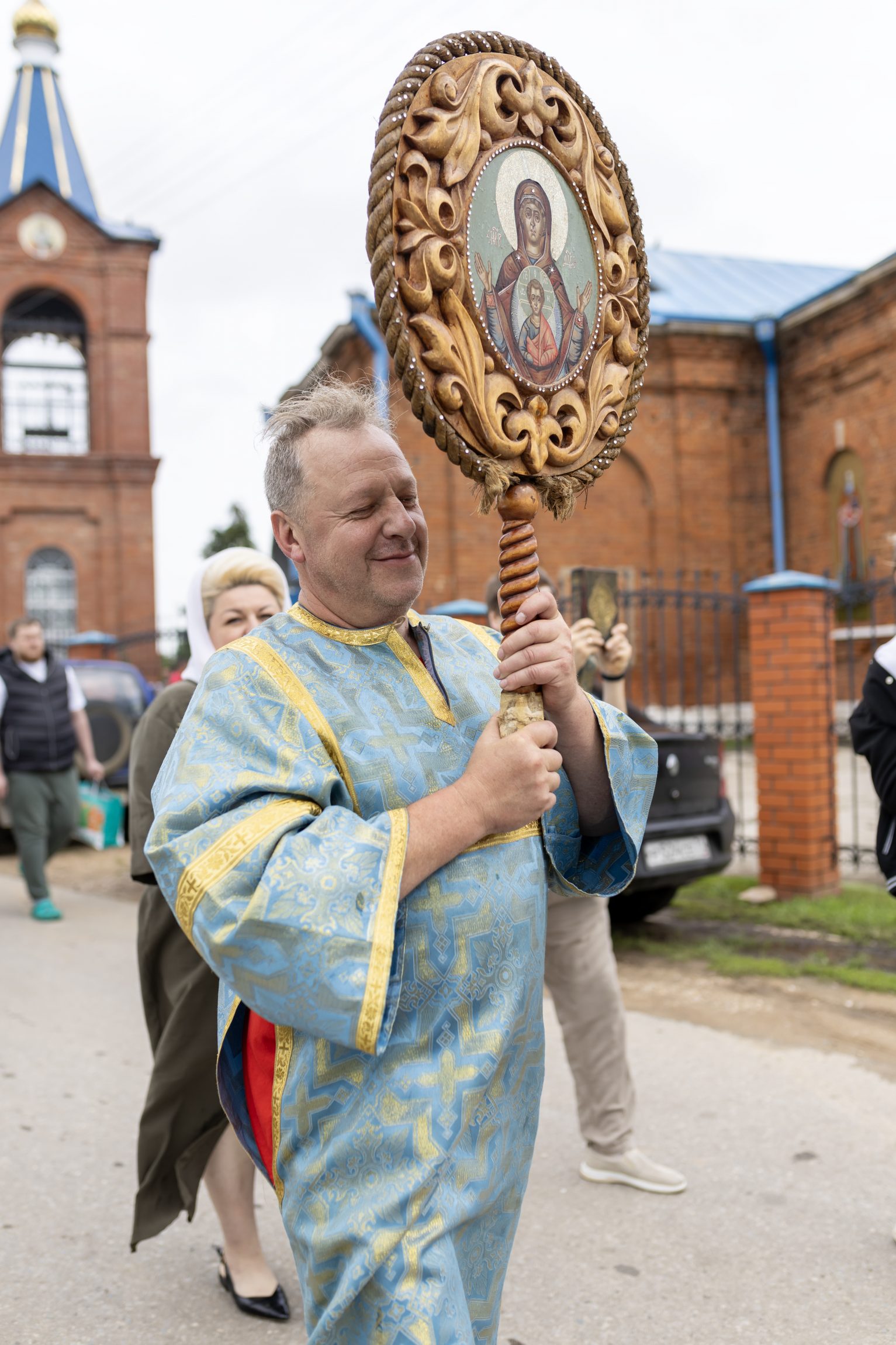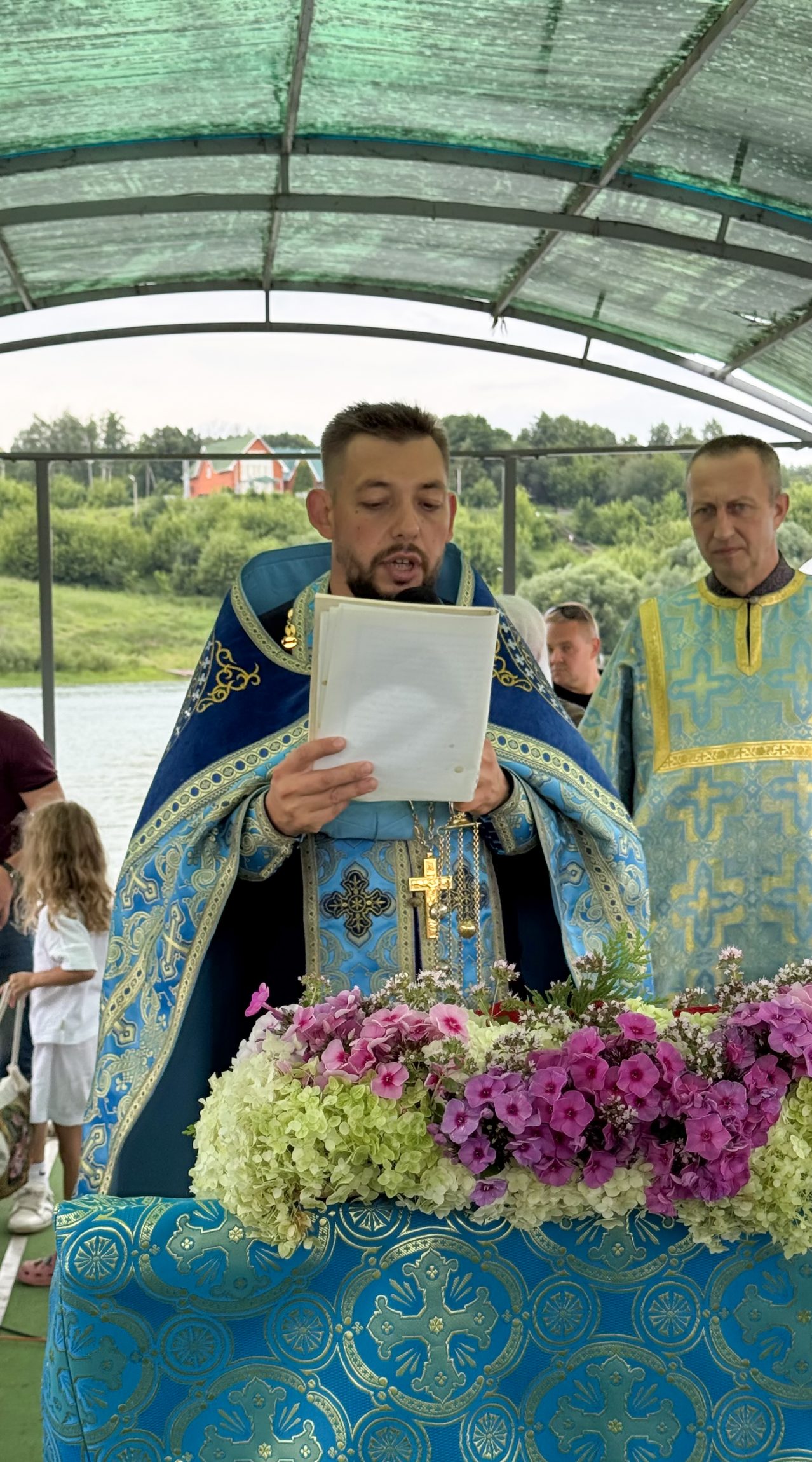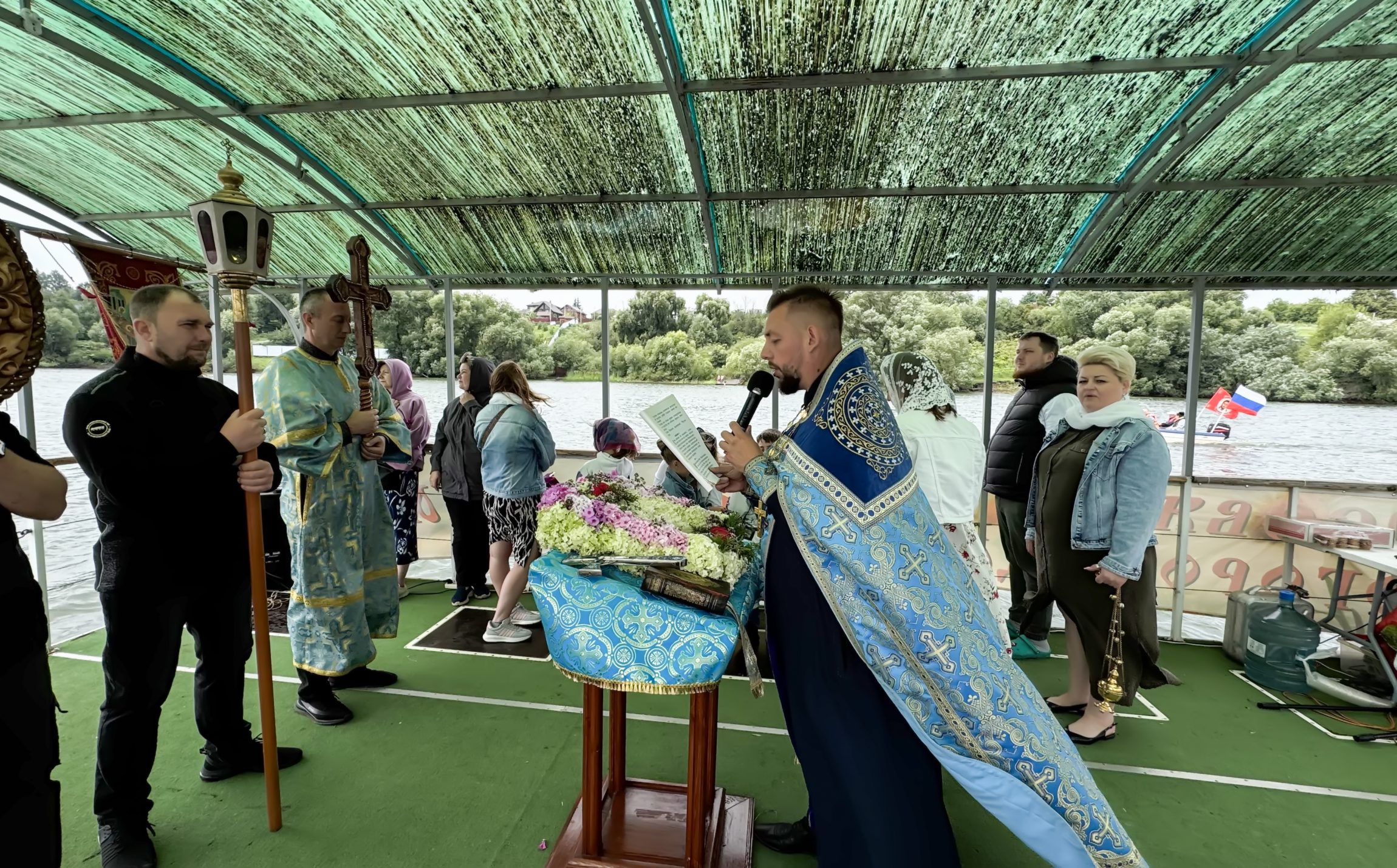 По окончании Божественной литургии благочинный Новомосковского округа протоиерей Владимир Лысиков обратился к прихожанам с пастырским словом: «Поздравляю всех вас с престольным праздником. Сегодня мы имеем такую благословенную возможность трудами вашими и трудами настоятеля храма отца Николая проплыть крестным ходом по реке Прони и получить духовное утешение».