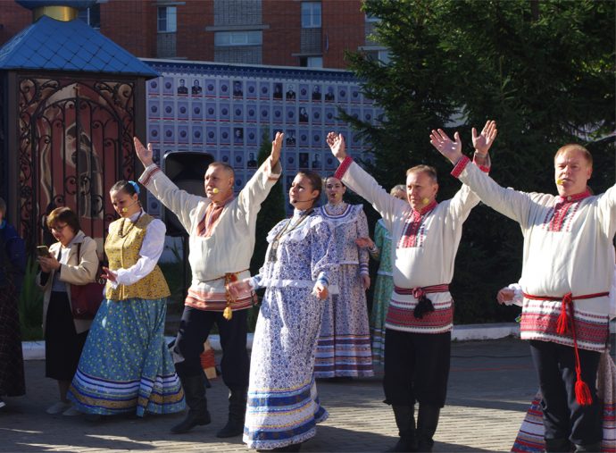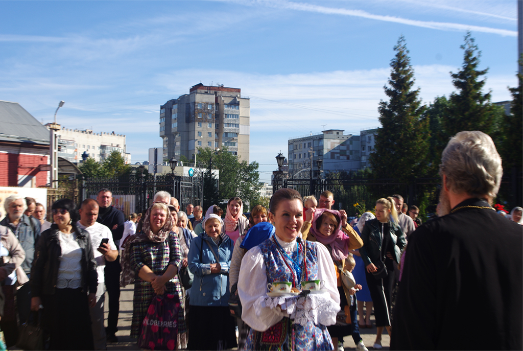По окончании Литургии священнослужители и миряне вышли на площадь перед храмом на приходской праздник «Благодарение Богу за урожай» – в рамках Всероссийского Дня трезвости.