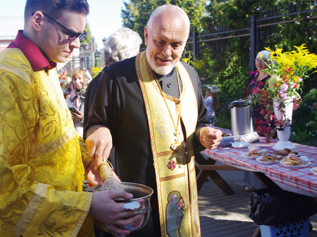 Настоятель храма протоиерей Виктор Рябовол напомнил о главной составляющей праздника – утверждении традиций трезвого образа жизни. Работа на земле, уход за растениями – это одна из четырех традиций здорового образа жизни, утверждаемого в приходе храма. А всего этих традиций четыре: садоводство-огородничество, чаепитие, спорт и уход за животными: «Человека надо научить пить чай, а главное, научить его готовить. Это целая церемония – неспешная, мирная. Очень важен труд на земле: это содержание второй традиции, которую внедряет наша община. Посмотрите на этих людей, что принесли свои урожаи и разложили их на столах – эти люди проявляют щедрость. А мы с вами пришли, чтобы принять сии дары! Третья традиция – это здоровый спортивный образ жизни. Детей надо научить двигаться – в веселых привычных для Руси играх. Да и нам с вами полезно движение. А четвертая традиция – это трогательный зоопарк. Так мы называет исцеляющее общение с животными».
