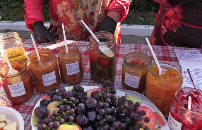 Садоводы и огородники принесли то, что у них особенно хорошо уродилось, чем можно поделиться: чеснок и базилик, семена, которые могли взять себе все желающие. Можно было увидеть на празднике перец, капусту-брокколи, баклажаны, виноград. На вопрос, как удается выращивать такие замечательные плоды, люди отвечали просто: «Бог помогает!»