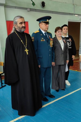 На мероприятии присутствовали учащиеся школы, преподаватели и настоятель храма святителя Луки Крымского поселка Восточный иерей Виталий Хлустиков.