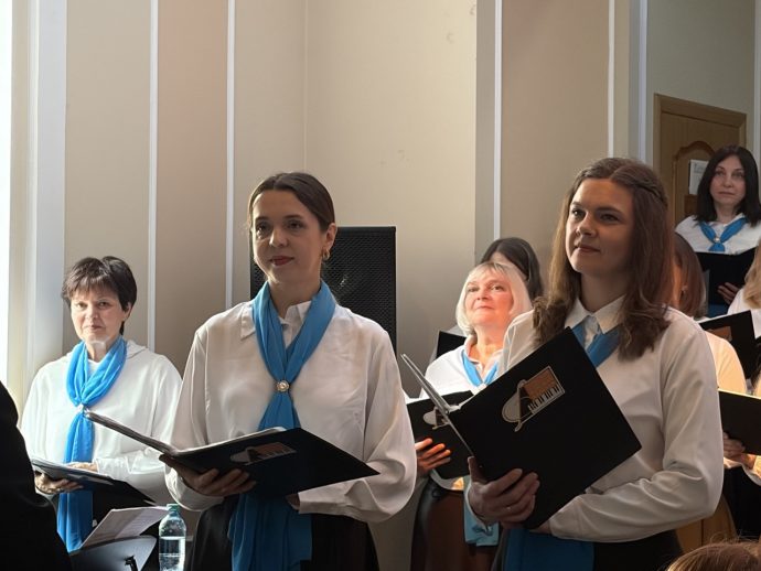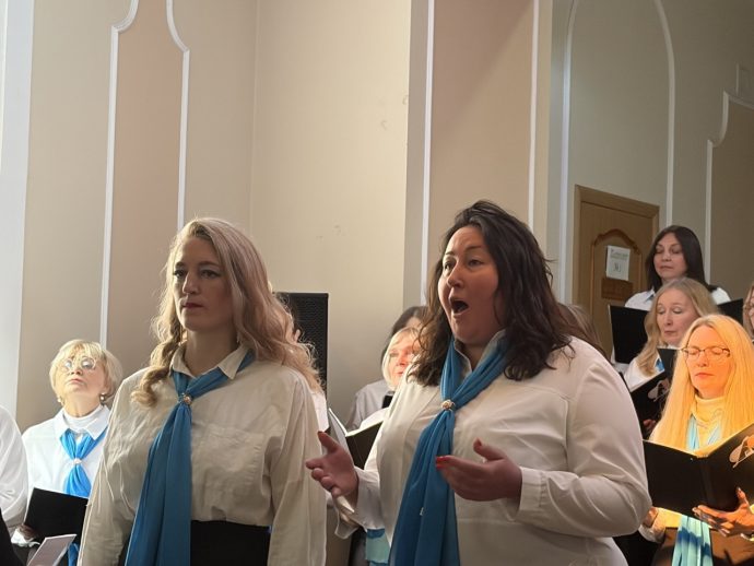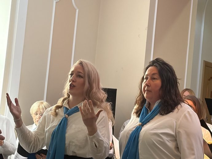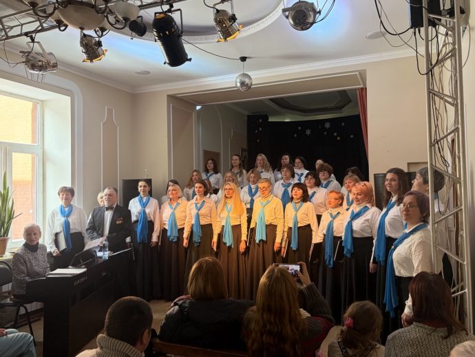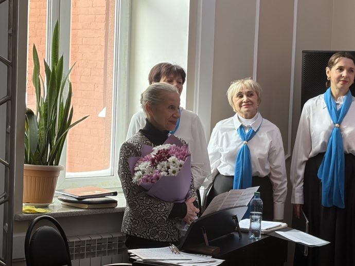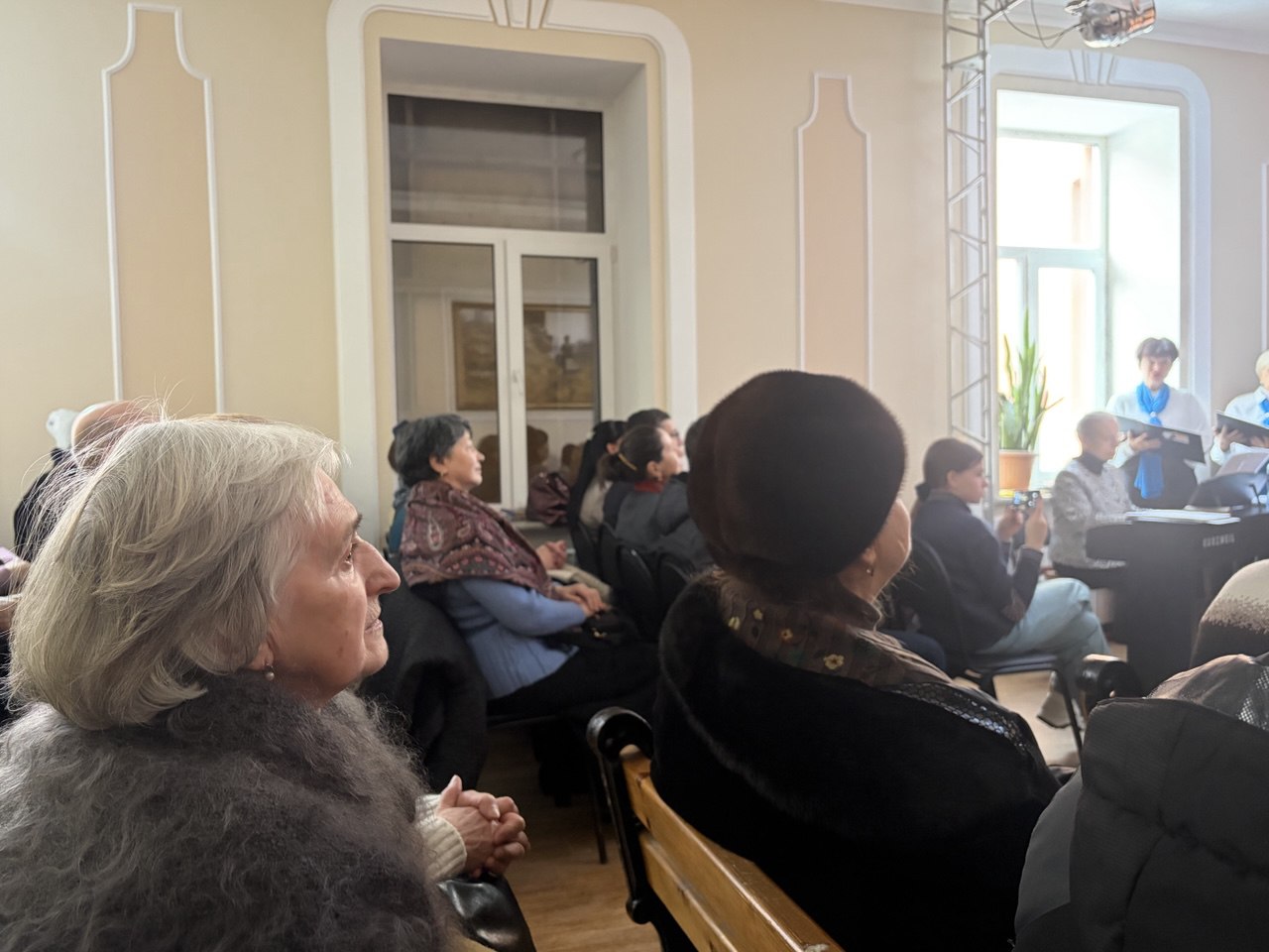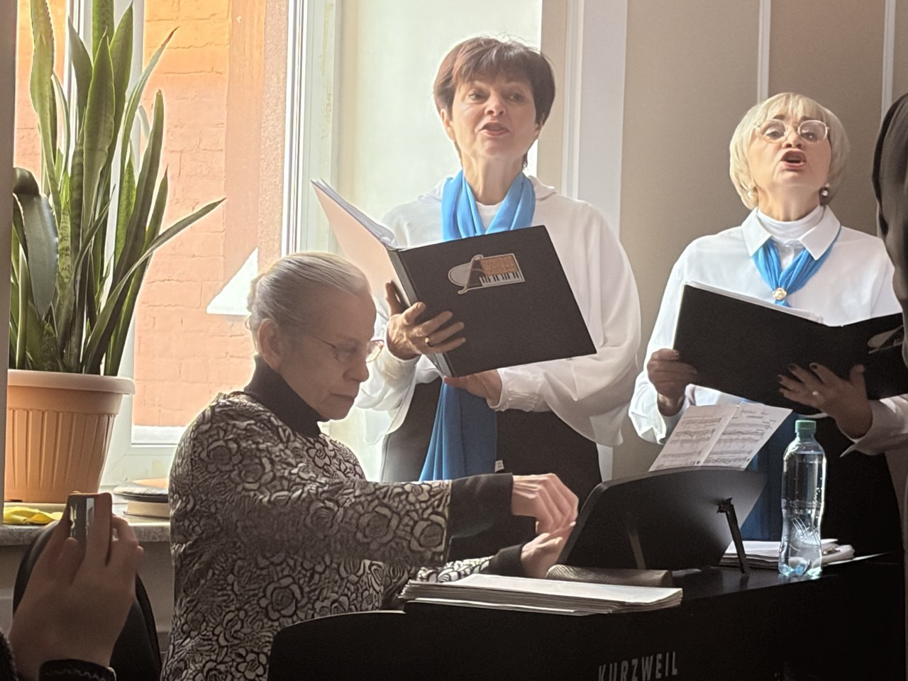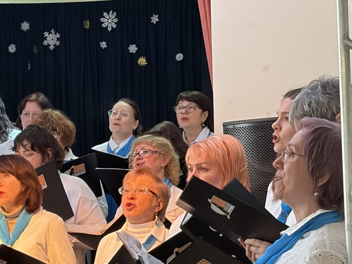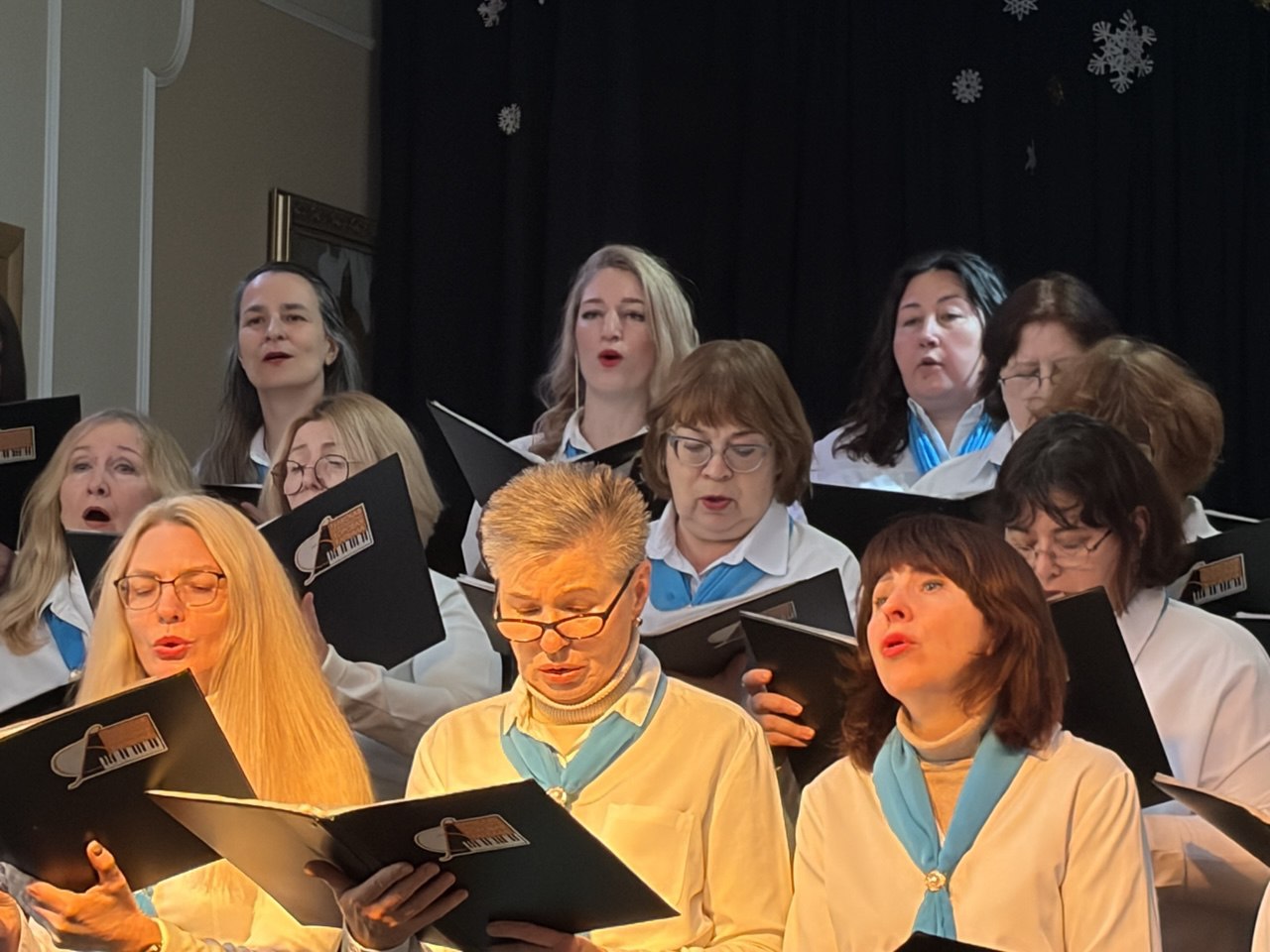 «Я всегда любила музыку разных жанров и с детства пела просто для себя, – делится Светлана Щербакова. – Моим первым музыкальным опытом стал школьный хор, потом — институтский. В зрелом возрасте я продолжала петь на только в компании друзей и на семейных праздниках. Когда я начала ходить в храм, меня глубоко тронули песнопения нашего церковного хора. Эта музыка, вместе со службой, ложилась на душу и вызывала слёзы. Через несколько лет, в 2020 году, я увидела объявление о создании народного хора прихожан под регентством Анны Гришаевой. Там я познакомилась с Людмилой, которая оказалась профессиональным музыкантом. Людмила мне многое объясняла, и мы подружились. В 2022 году она пригласила меня в капеллу филармонии, и началась моя серьёзная и очень интересная музыкальная жизнь. Мы изучали разные произведения — знакомые и новые. Я и не думала, что пение может быть таким сложным, но это невероятно интересно: разбирать партии, ждать своего входа… Я всем сердцем полюбила это дело. Я очень благодарна всем руководителям, которые вкладывают в нас душу. Сейчас с нами занимается Георгий Степанович — активный, энергичный и разносторонний человек. Он живёт этим делом, сам пишет для нас аранжировки, создает музыкальные заготовки. Выступать сегодня перед знакомой публикой было очень приятно — чувствуется искреннее настроение людей, их радость и интерес. Я благодарна всем, кого встретила на этом творческом пути: Людмиле, Анне Владимировне, Георгию Степановичу. Они дали мне очень много для музыкального развития, и музыка помогает мне жить».