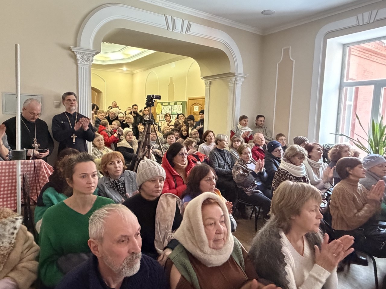 Творческий коллектив Тульской любительской хоровой капеллы под управлением заслуженного работника культуры Георгия Августиновича выступил на сцене церковного дома храма преподобного Сергия Радонежского. Аккомпанировала артистам концертмейстер Татьяна Мелиоранская.