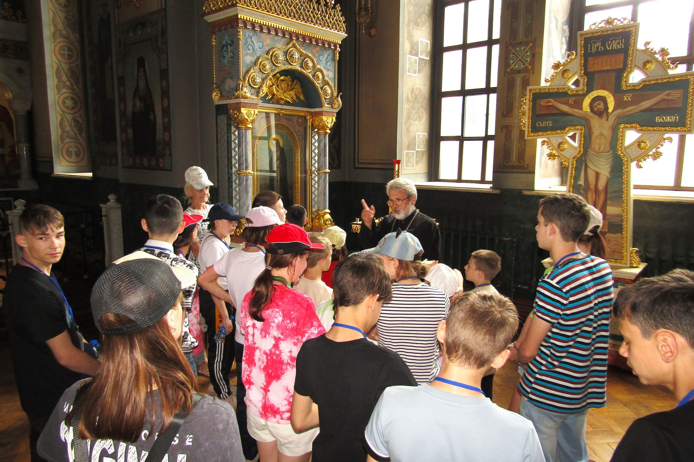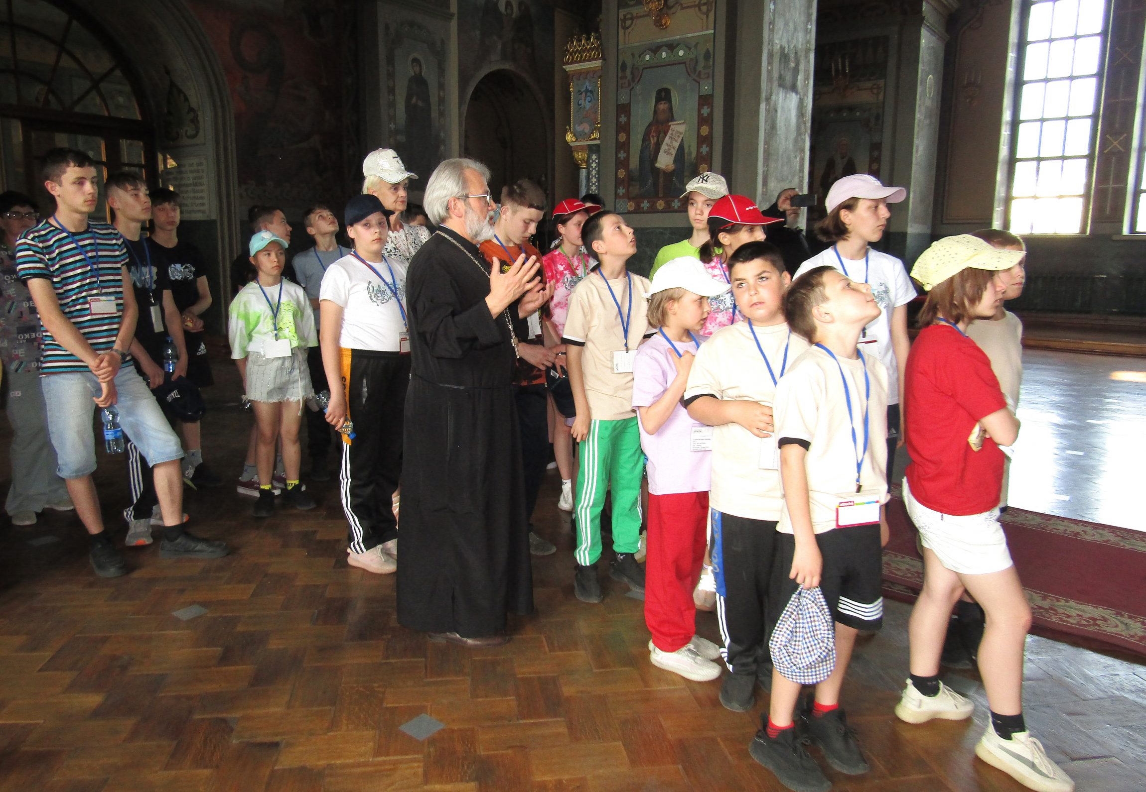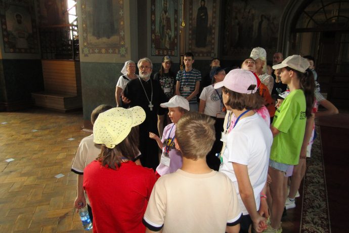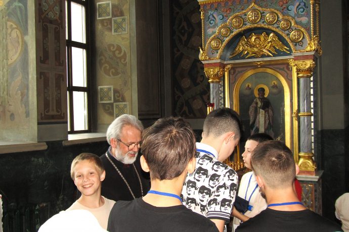 На Тульской земле маленьких гостей из Донбасса встречали в том числе и в Успенском кафедральном соборе. Настоятель собора протоиерей Сергий Резухин организовал и лично провел для ребят экскурсию по храму, познакомил детей со святынями Успенского собора, там же они смогли немного отдохнуть и подкрепиться. Дети с интересом осмотрели центральный тульский собор, познакомились с его святынями и поставили свечи у икон. На прощание отец Сергий благословил детей, подарив им нательные крестики и небольшие иконки.