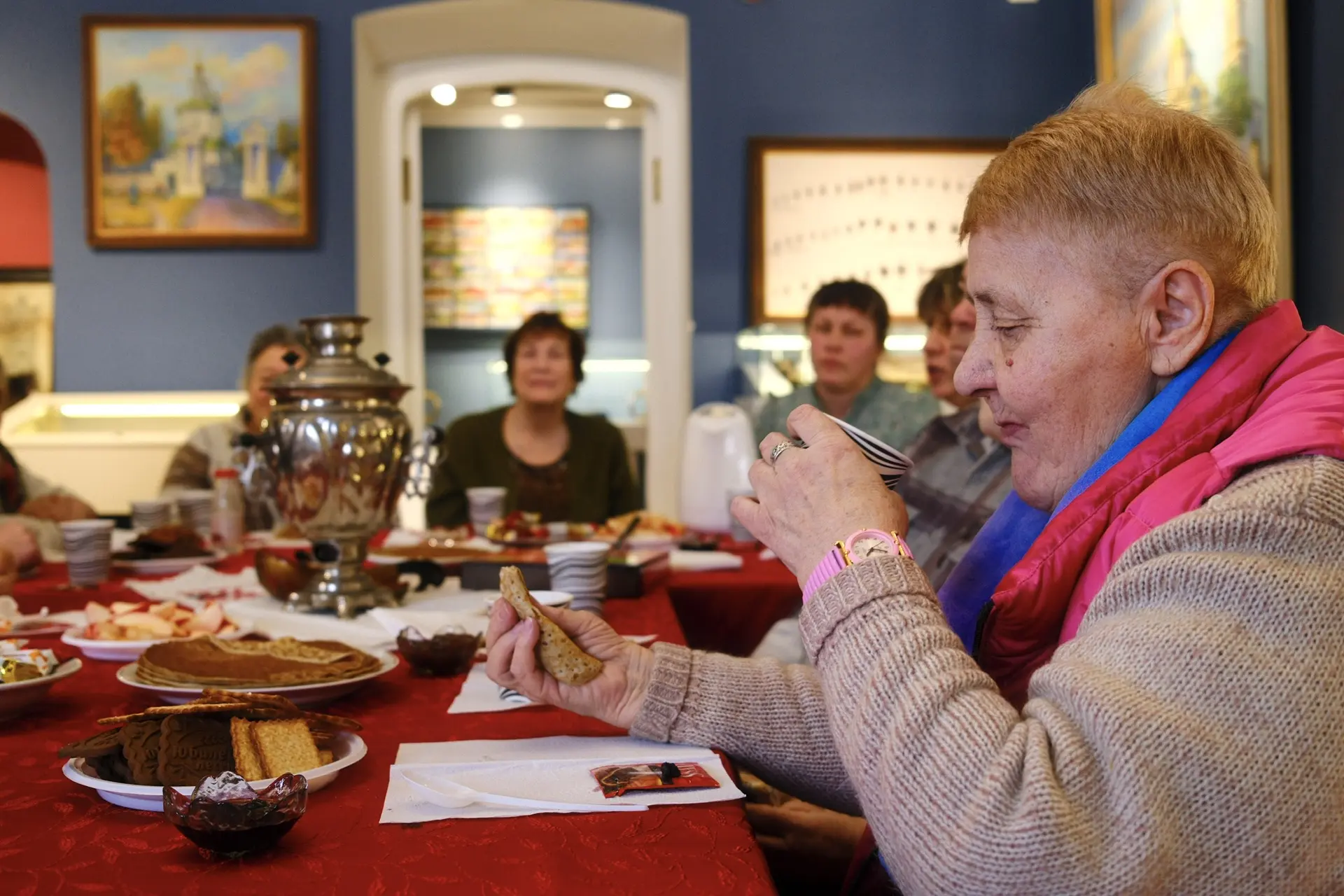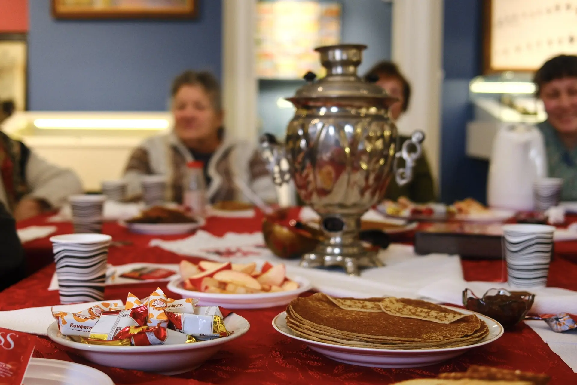 Всех ожидало традиционное угощение – горячий чай, ароматные блины с разнообразным вареньем. Это стало не только вкусным началом дня, но и приятным моментом общения, когда каждый мог почувствовать атмосферу тепла и заботы. Такие встречи укрепляют дружбу, создают чувство единства и радости, что особенно важно.